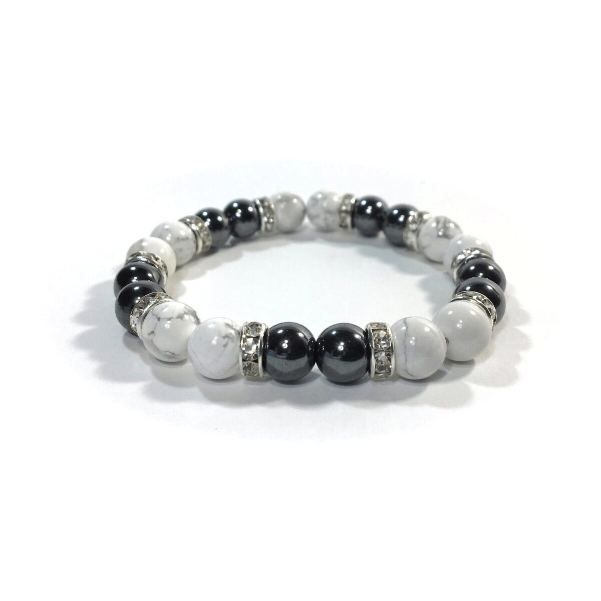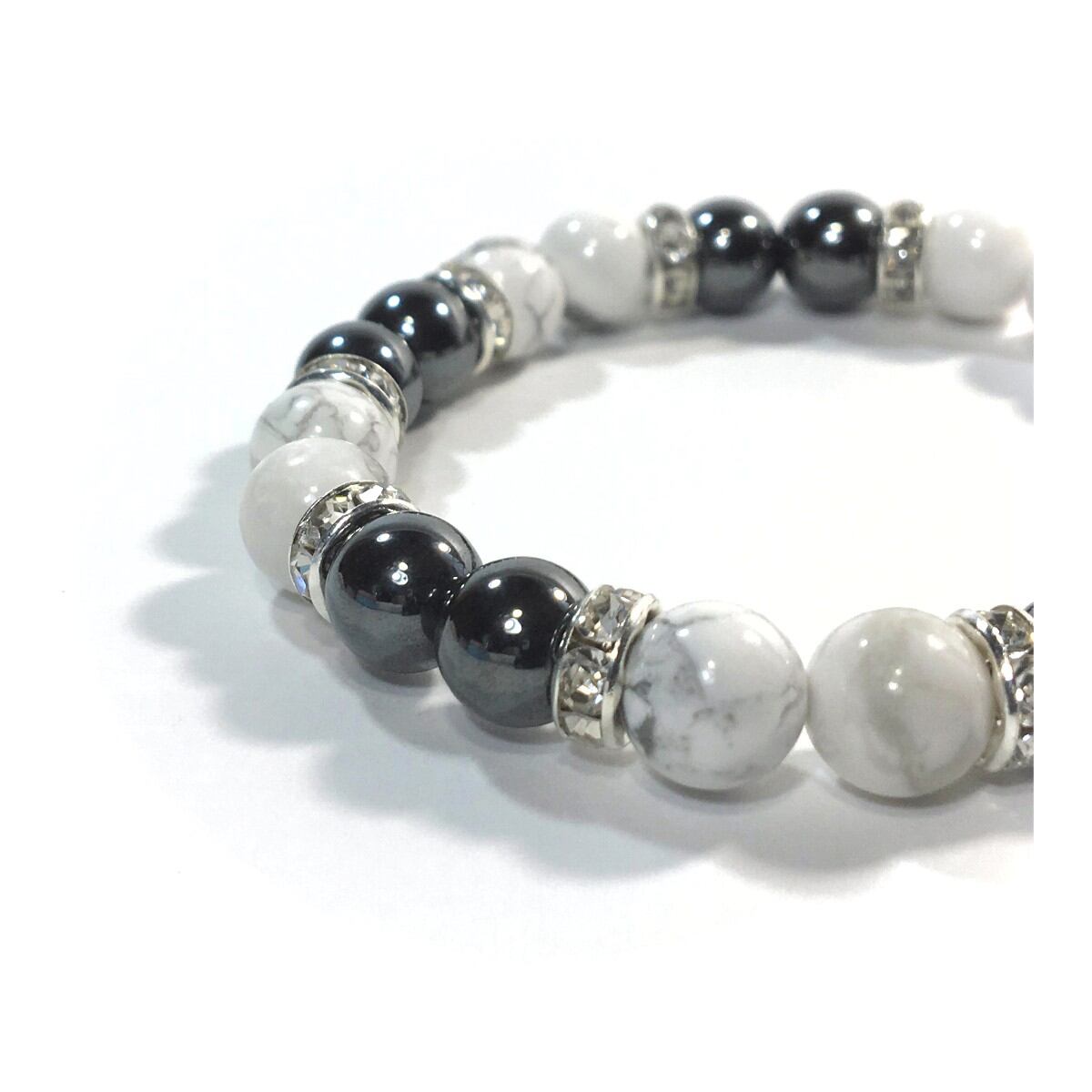 ハウライト&ヘマタイト パワーストーン ブレスレット 天然石 8mm(シルバー)レディース 女性 数珠ブレス 開運 プレゼント ギフト