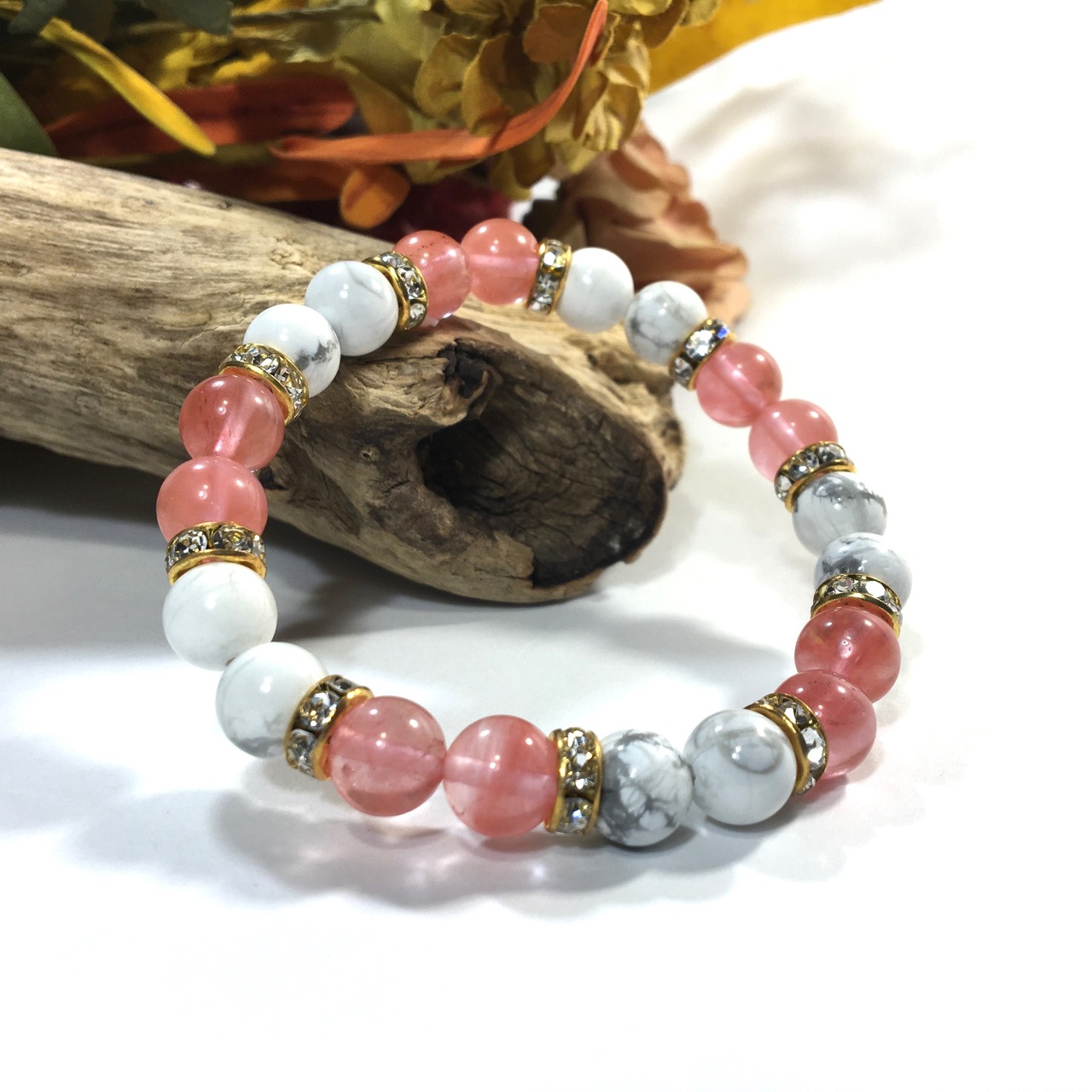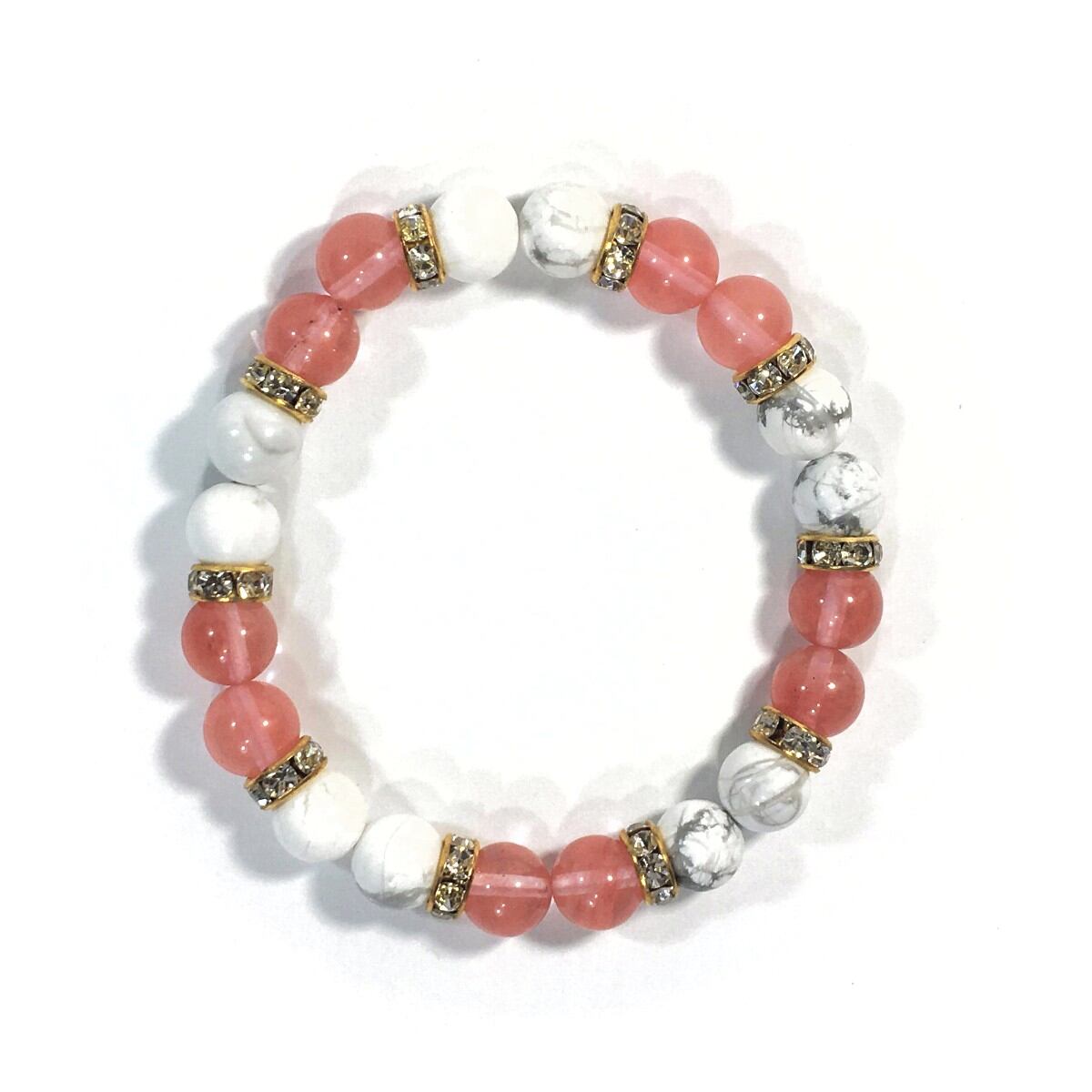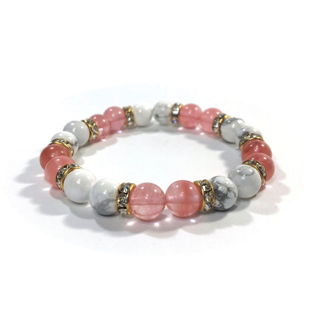 ハウライト&チェリークォーツ パワーストーン ブレスレット 8mm(ゴールド)レディース 女性 数珠ブレス 開運 プレゼント ギフト