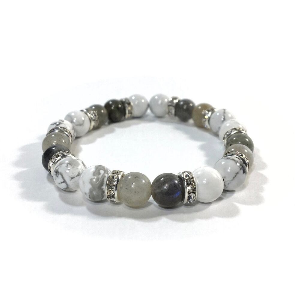 ハウライト&ラブラドライト パワーストーン ブレスレット 天然石 8mm(シルバー)レディース 女性 数珠ブレス 開運 プレゼント ギフト