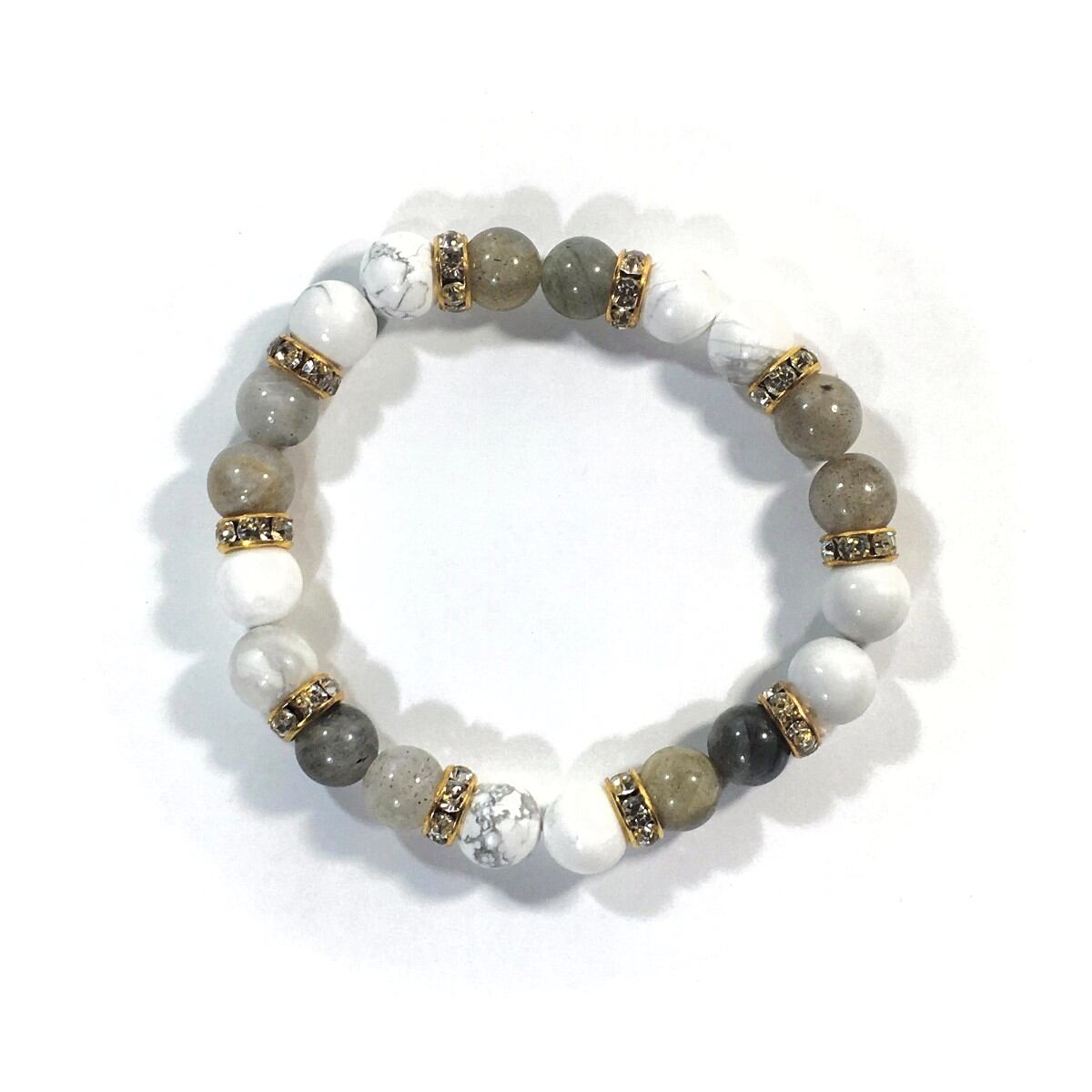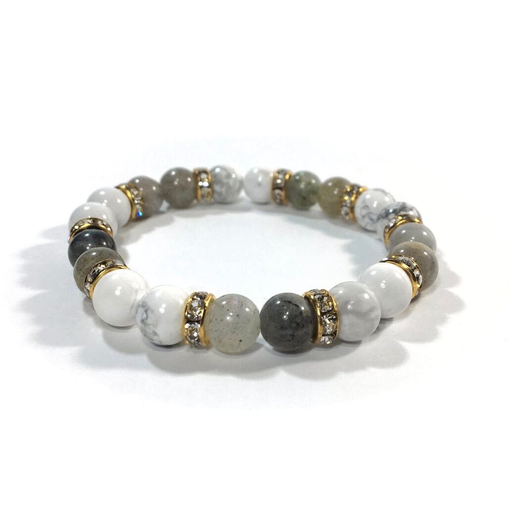 ハウライト&ラブラドライト パワーストーン ブレスレット 天然石 8mm(ゴールド)レディース 女性 数珠ブレス 開運 プレゼント ギフト
