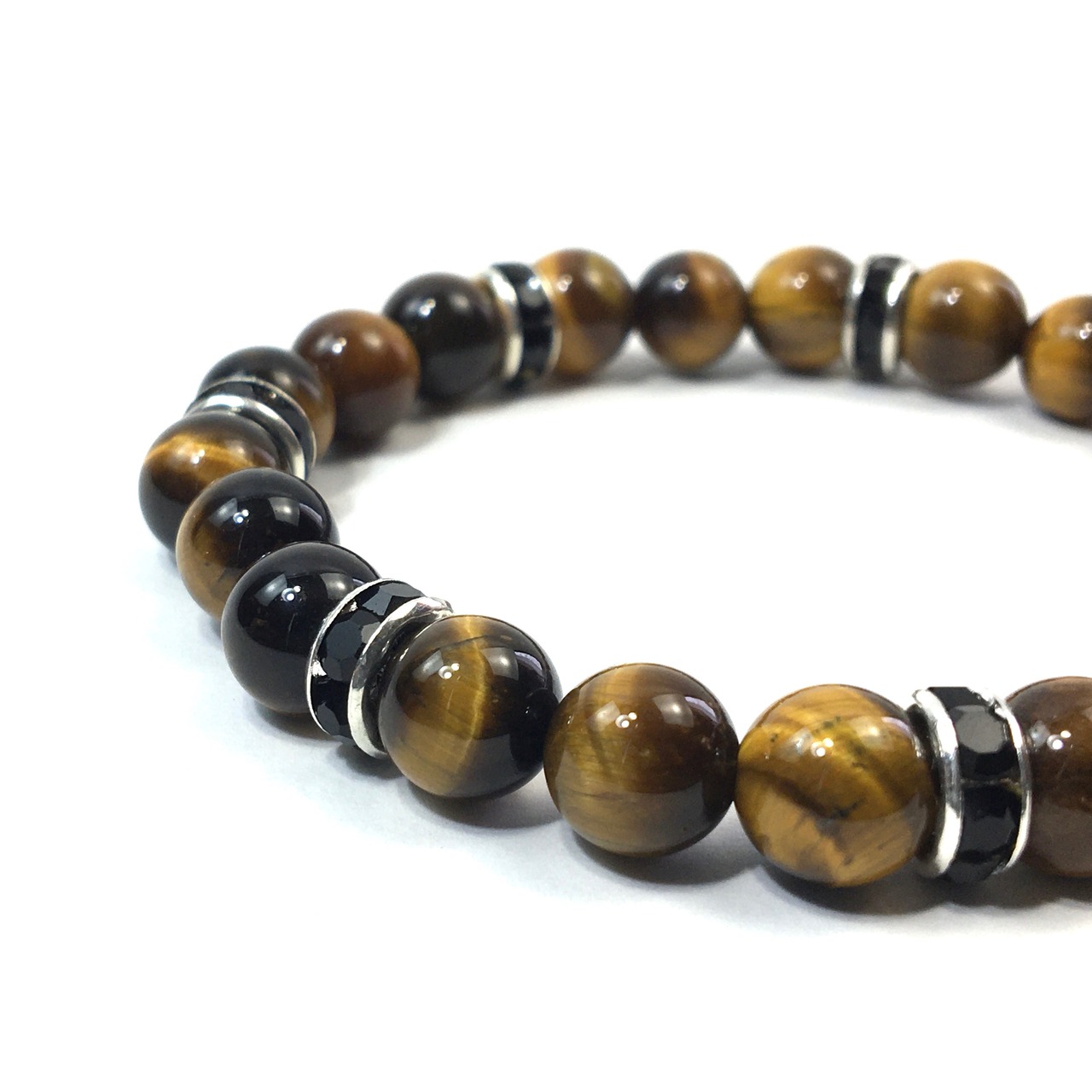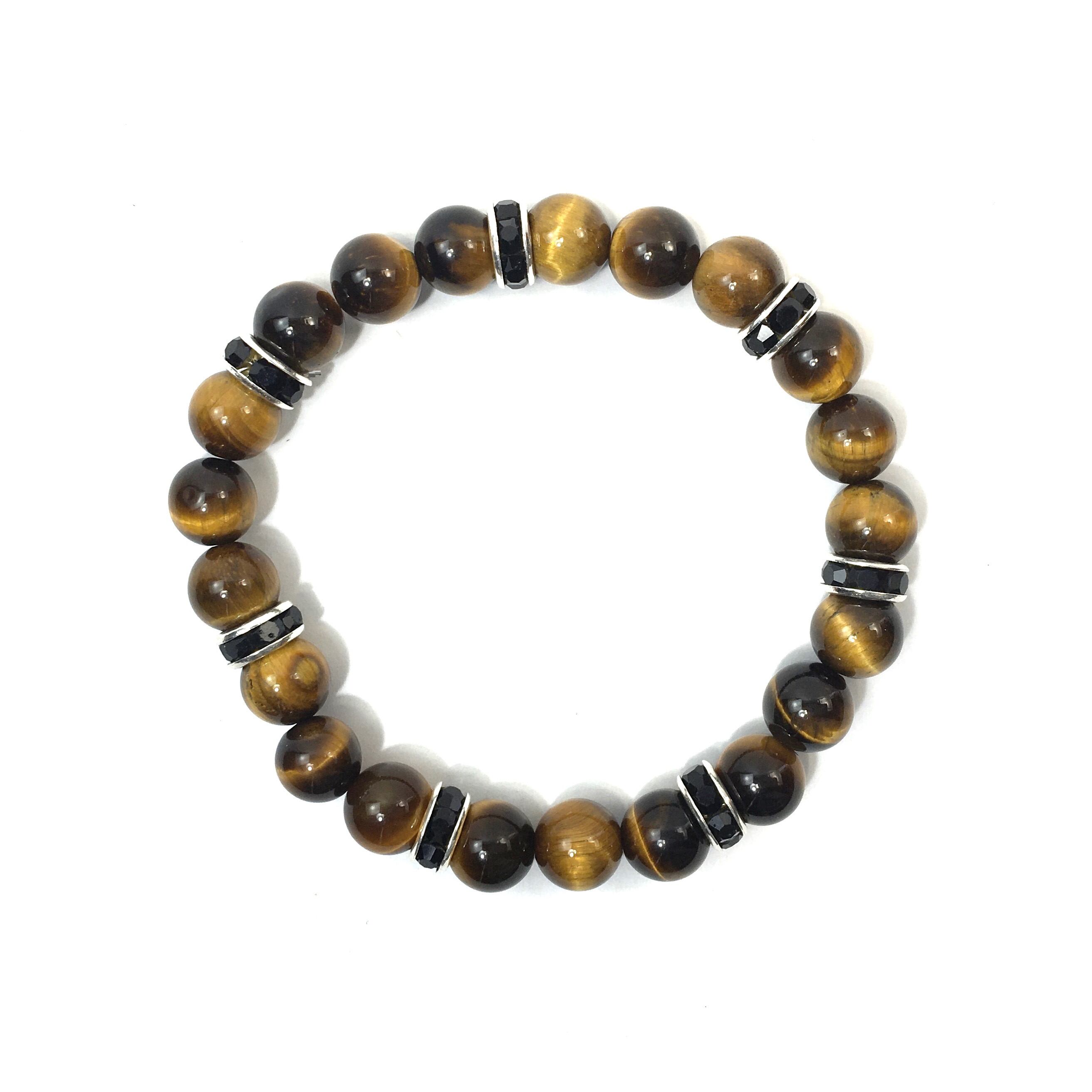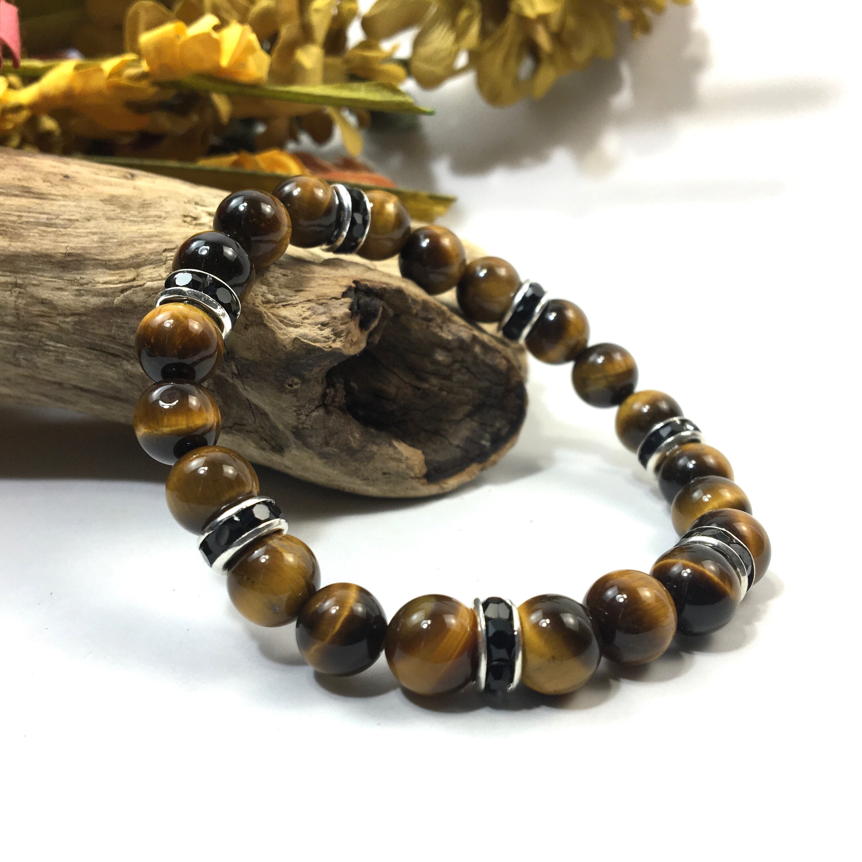 こちらは、8mm玉のタイガーアイを使ったパワーストーンブレスレットです。シンプルなデザインでどんなコーディネートにも合わせやすいデザインに仕上げています。サイズは内周約15cmです。気になる方は是非この機会にどうぞ。