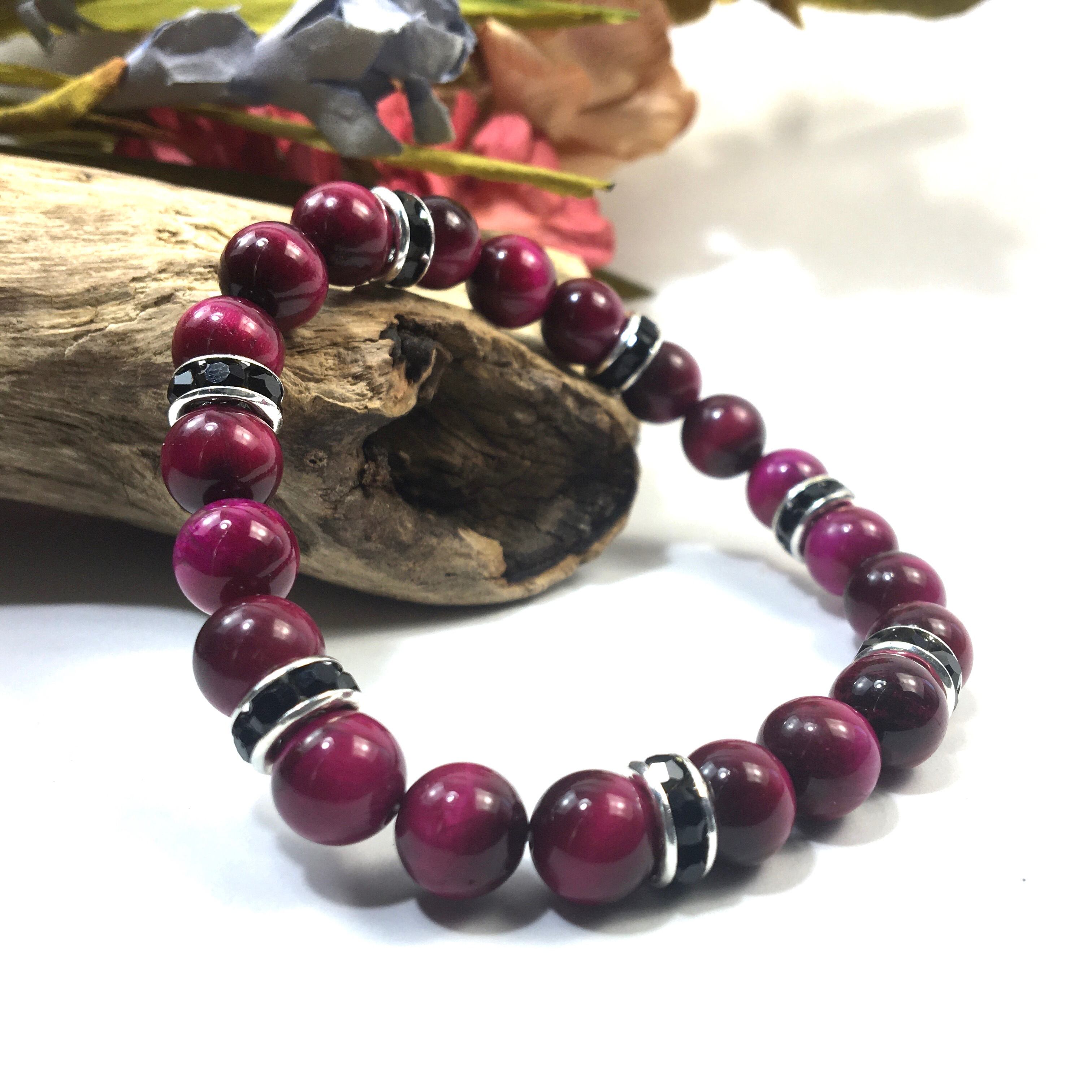 パワーストーン ブレスレット ピンクタイガーアイ (ブラック)レディース 女性 数珠ブレス 開運 プレゼント ギフト