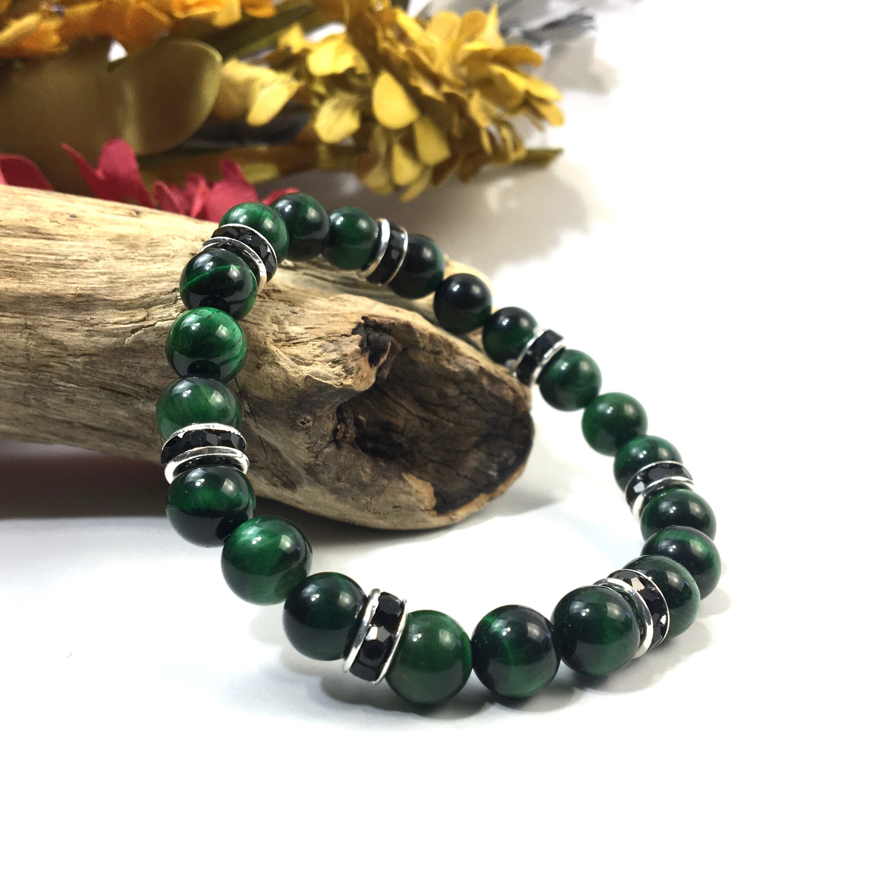 パワーストーン ブレスレット グリーンタイガーアイ (ブラック)レディース 女性 数珠ブレス 開運 プレゼント ギフト