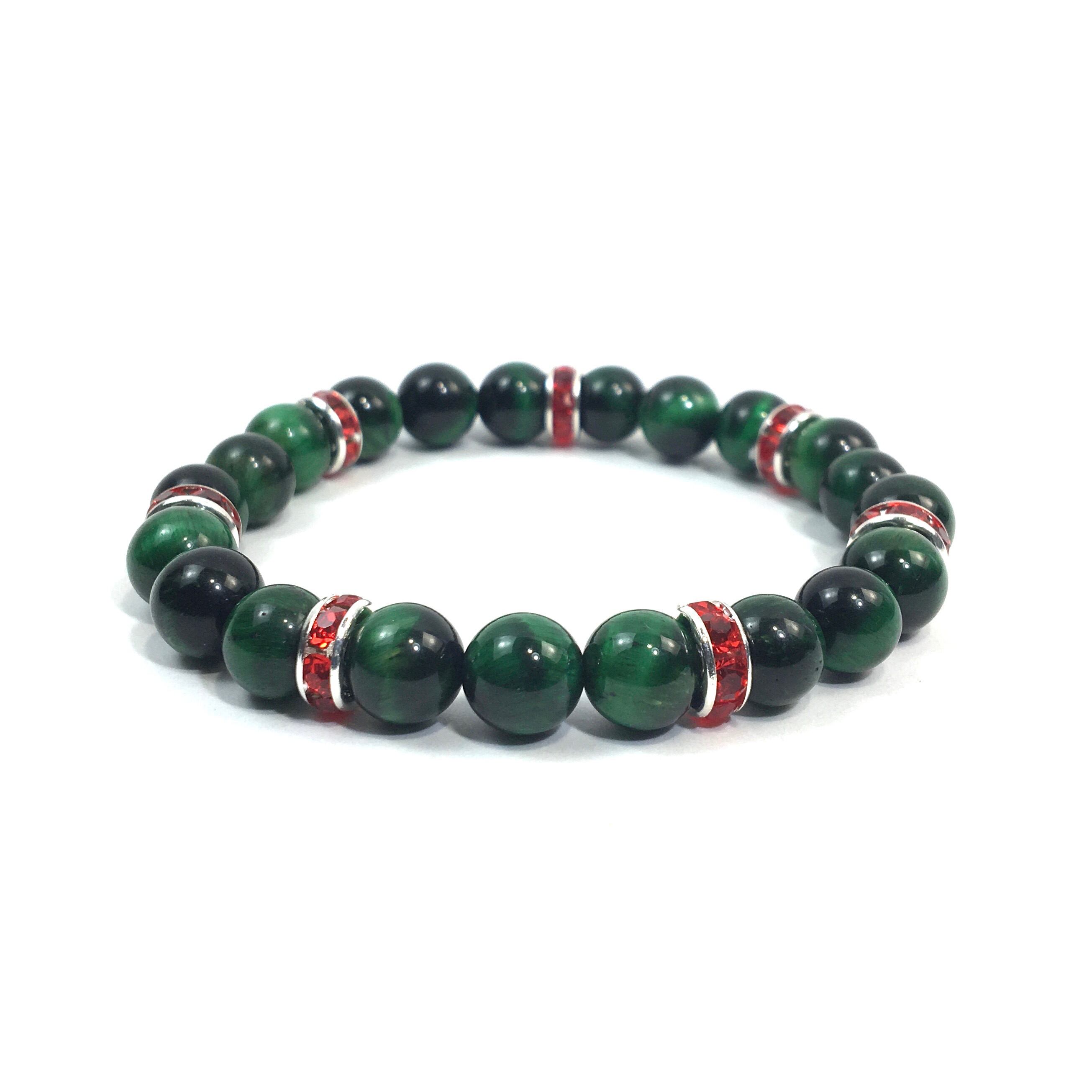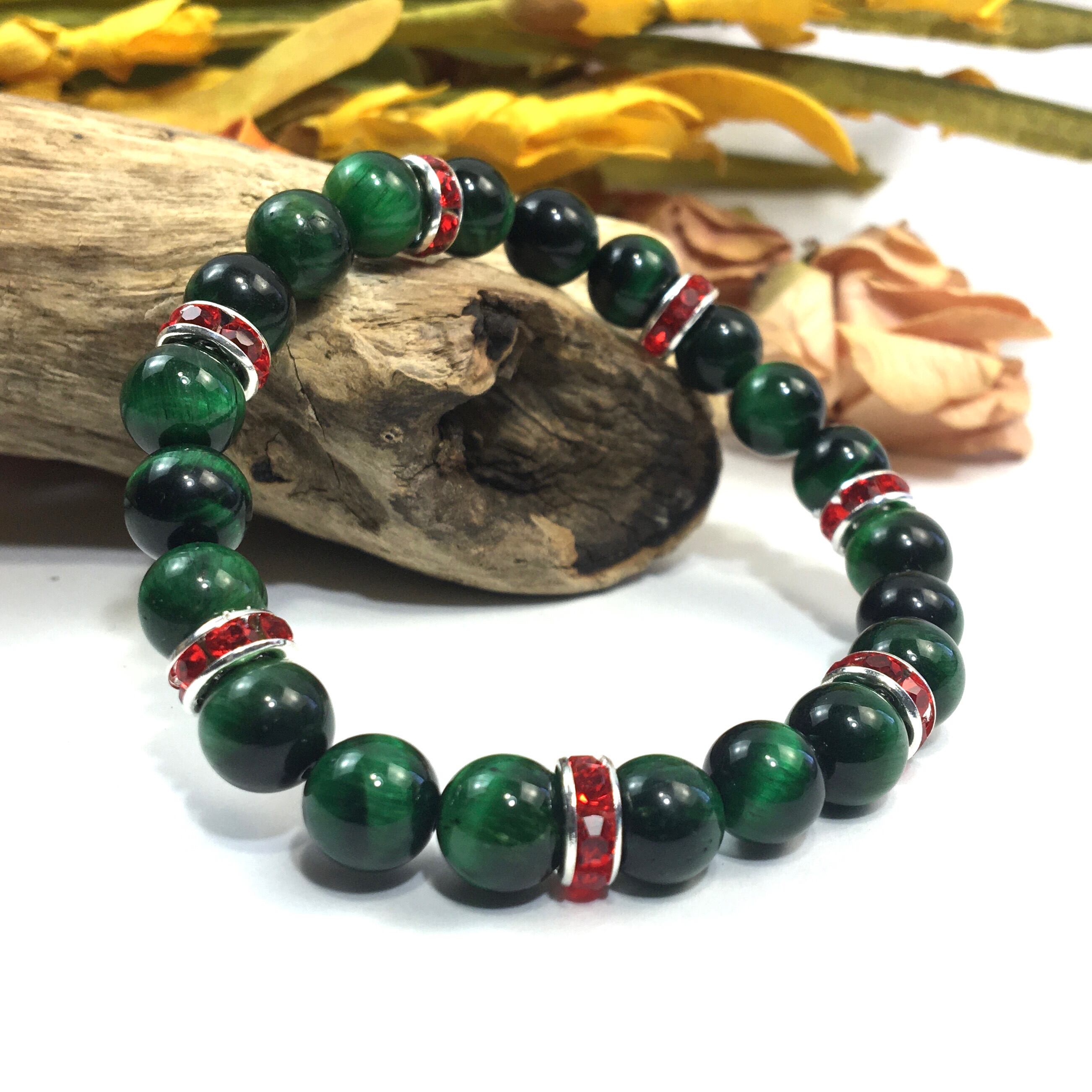 パワーストーン ブレスレット グリーンタイガーアイ (レッド)レディース 女性 数珠ブレス 開運 プレゼント ギフト