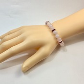 こちらは、8mm玉のローズクォーツを使ったパワーストーンブレスレットです。シンプルなデザインでどんなコーディネートにも合わせやすいデザインに仕上げています。サイズは内周約15cmです。気になる方は是非この機会にどうぞ。
