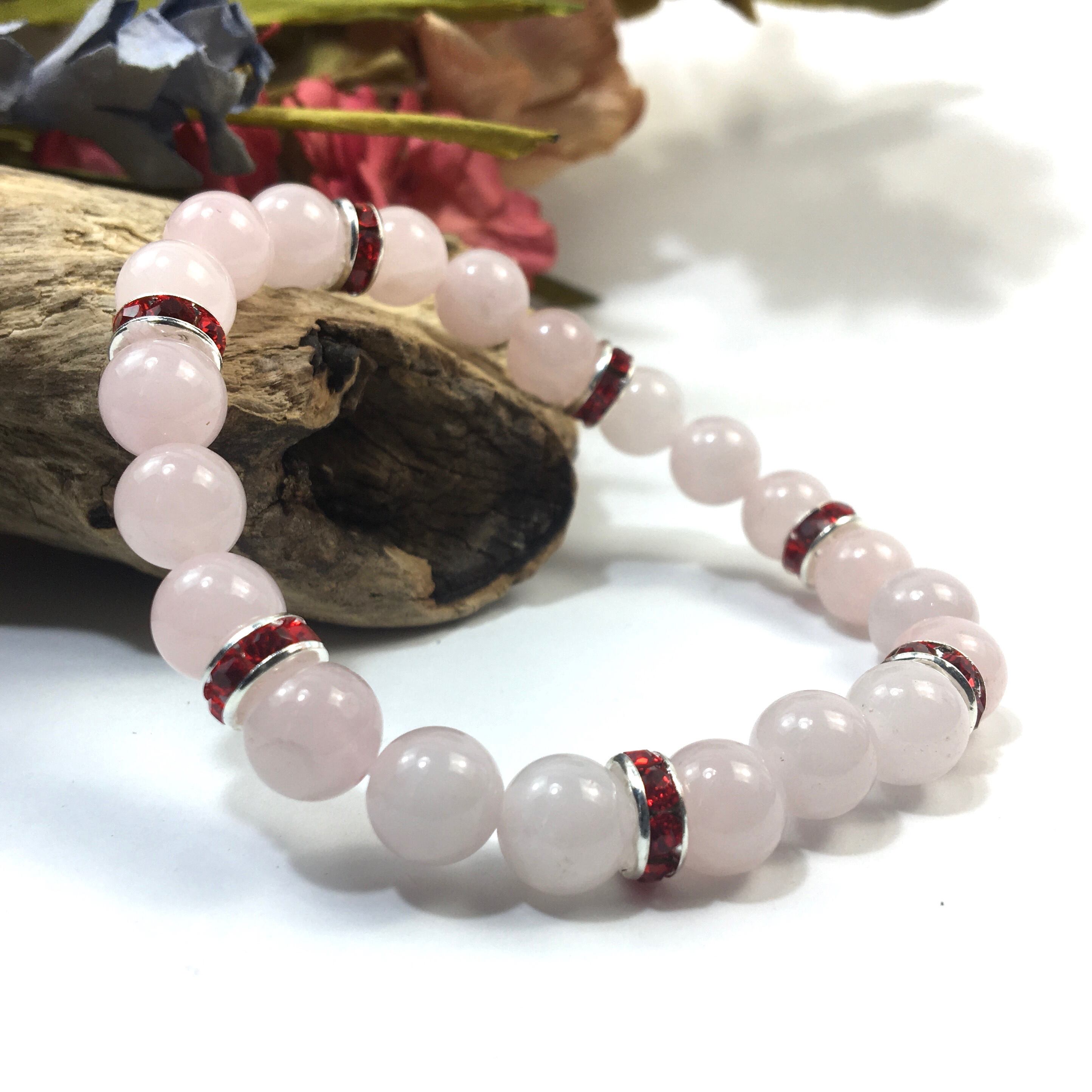 パワーストーン ブレスレット ローズクォーツ 天然石ブレス (レッド)レディース 女性 数珠ブレス 開運 プレゼント ギフト