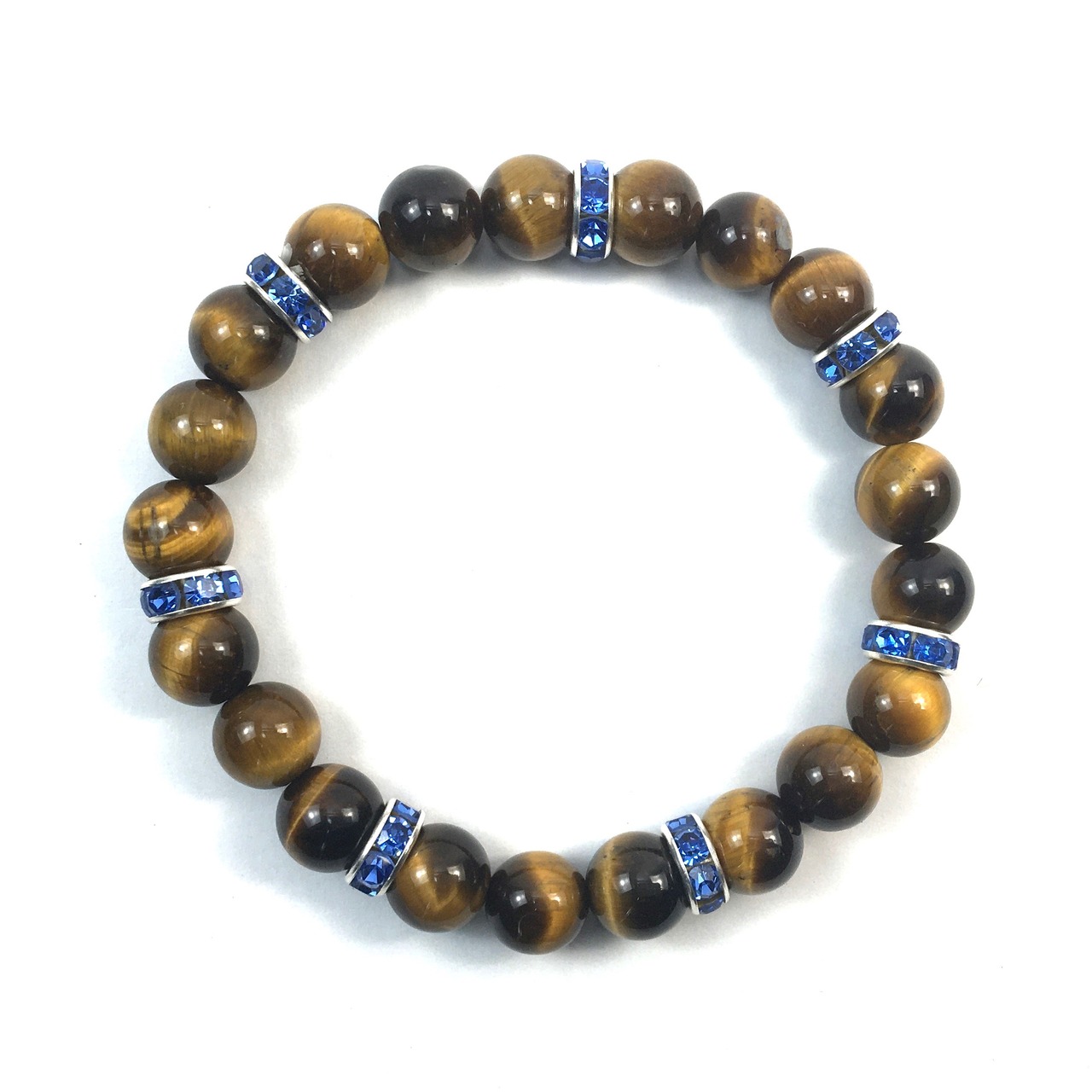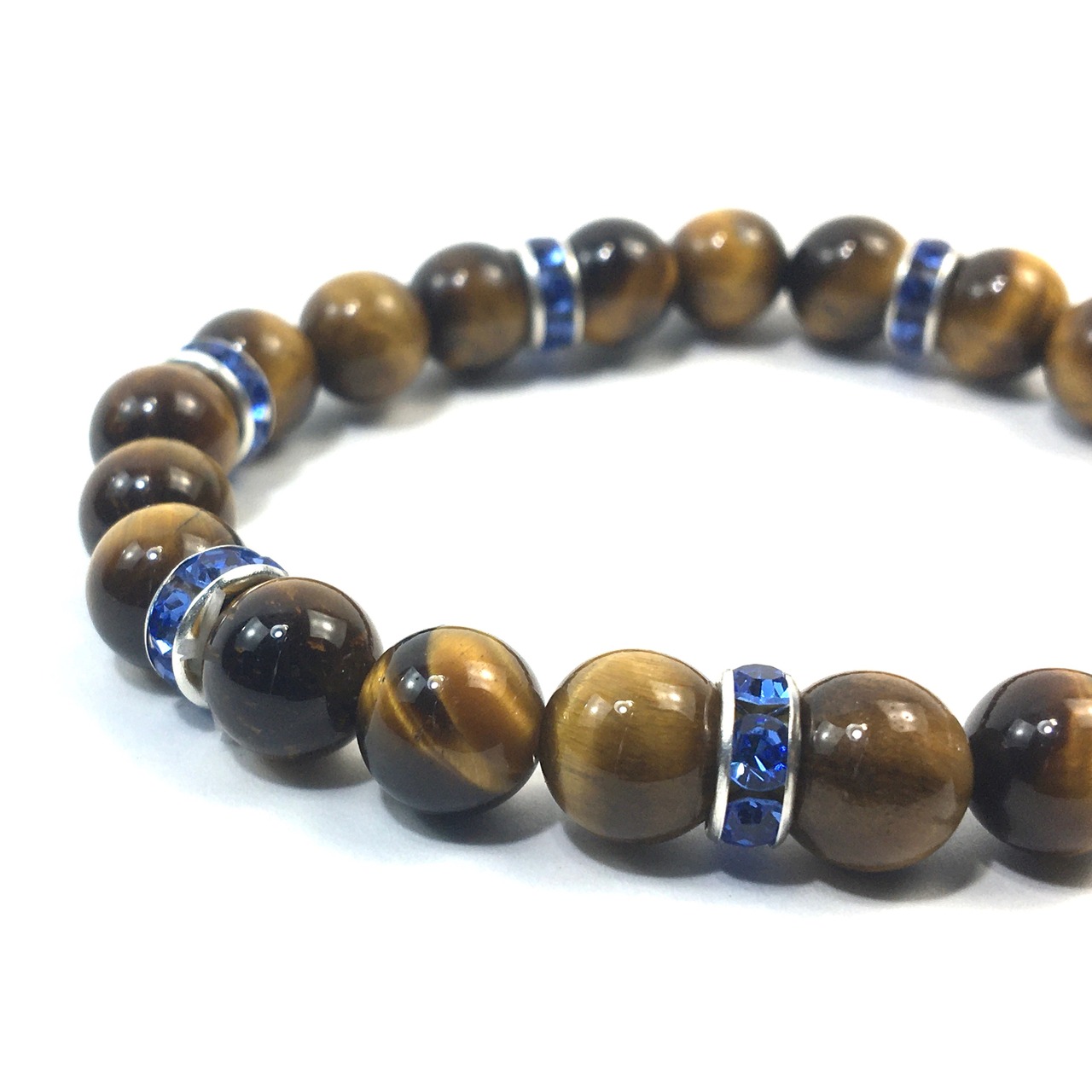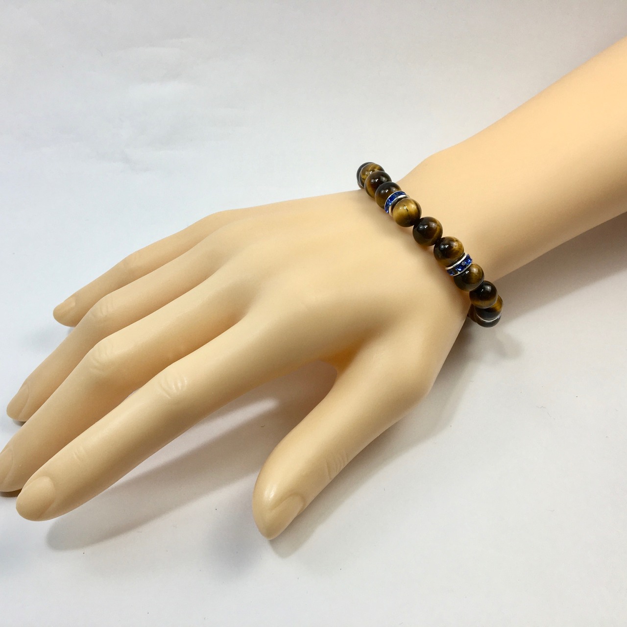 こちらは、8mm玉のタイガーアイを使ったパワーストーンブレスレットです。シンプルなデザインでどんなコーディネートにも合わせやすいデザインに仕上げています。サイズは内周約15cmです。気になる方は是非この機会にどうぞ。