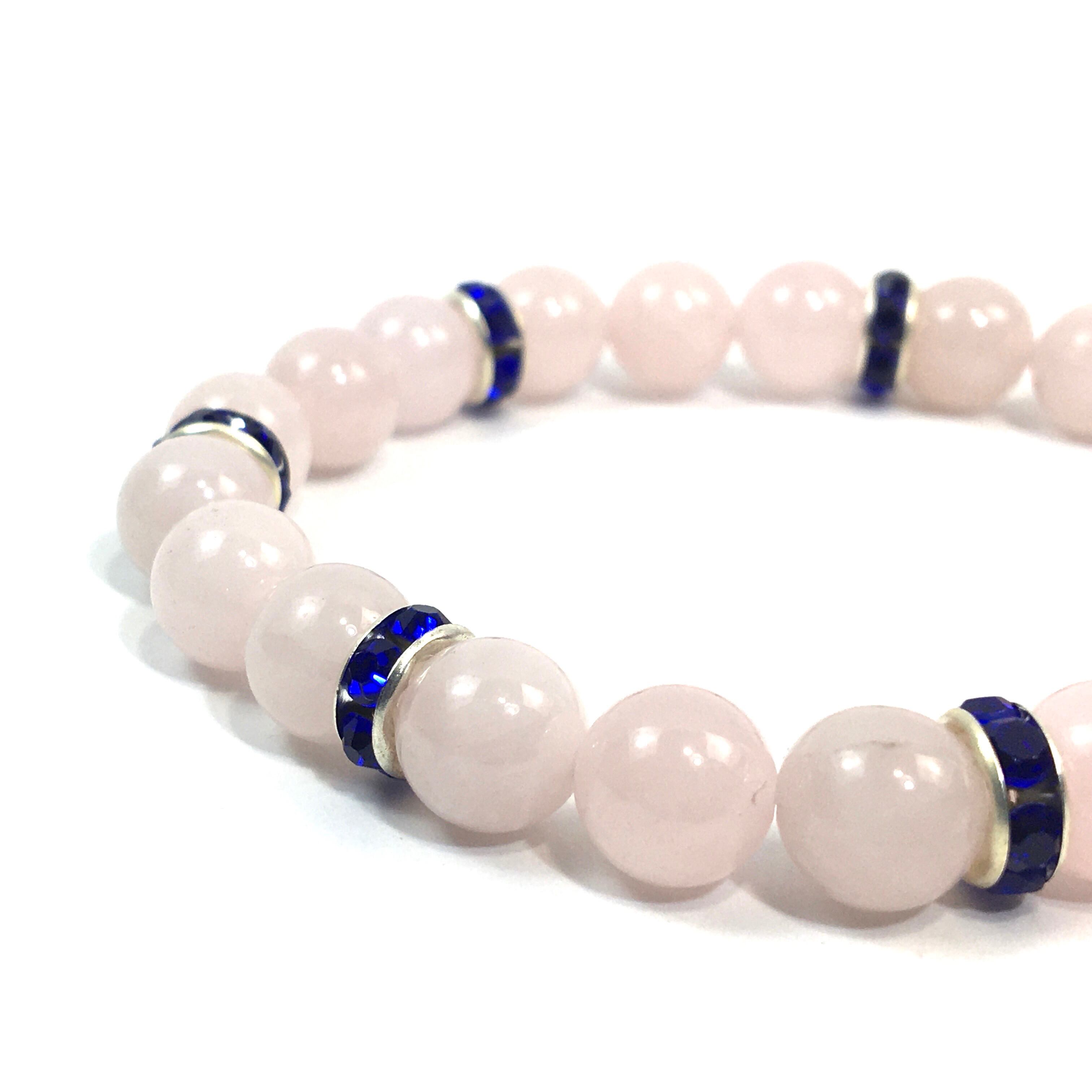 パワーストーン ブレスレット ローズクォーツ 天然石ブレス (ダークブルー)レディース 女性 数珠ブレス 開運 プレゼント ギフト