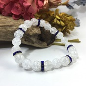 こちらは、8mm玉のクラック水晶を使ったパワーストーンブレスレットです。シンプルなデザインでどんなコーディネートにも合わせやすいデザインに仕上げています。サイズは内周約15cmです。気になる方は是非この機会にどうぞ。
