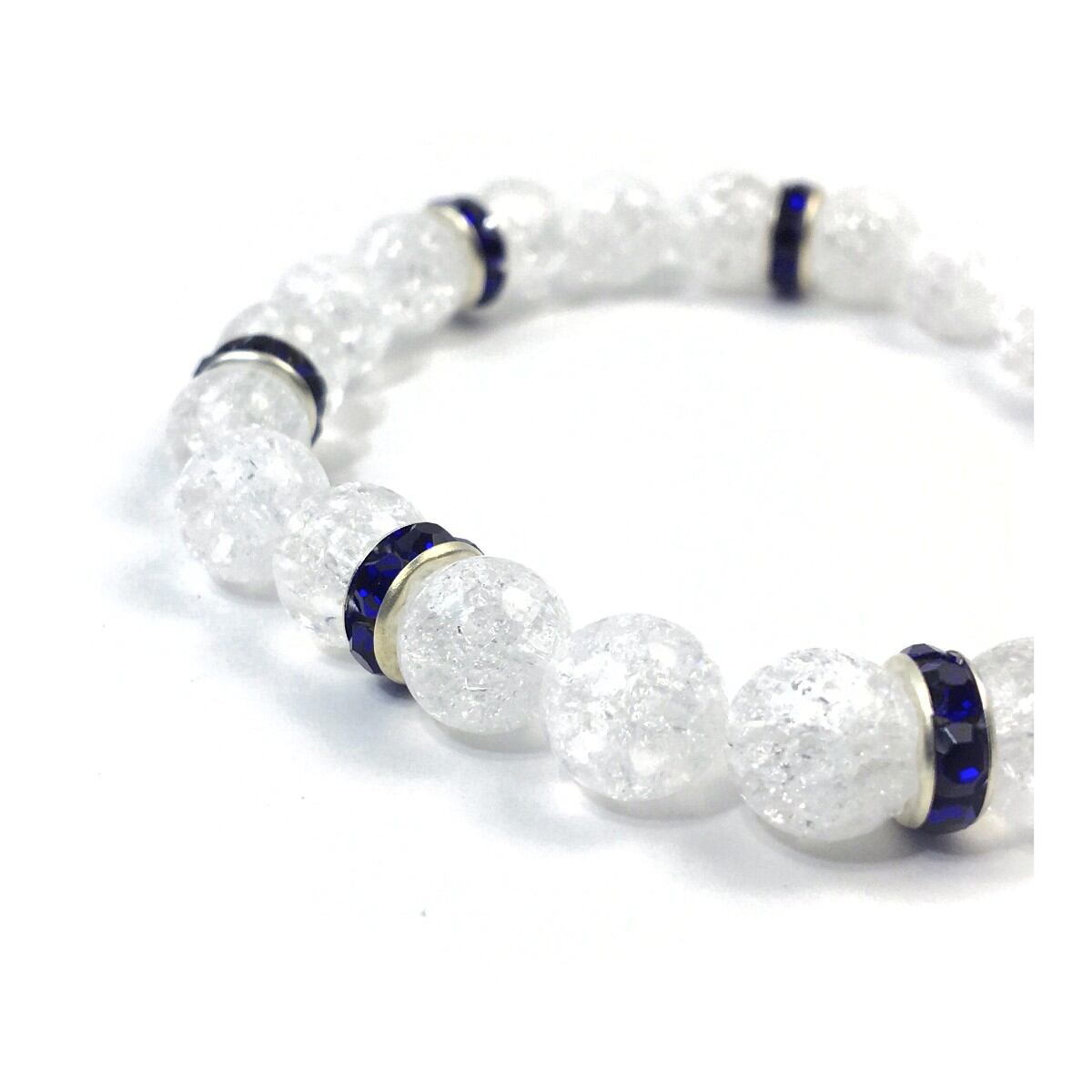 パワーストーン ブレスレット クラック水晶 天然石ブレス (ダークブルー)レディース 女性 数珠ブレス 開運 プレゼント ギフト