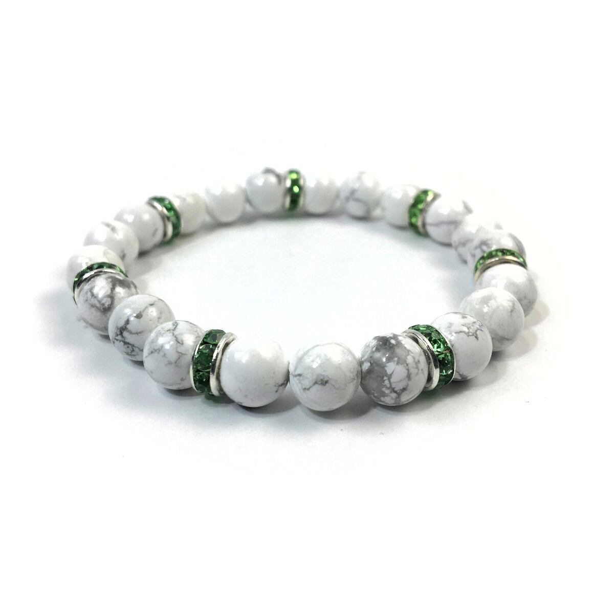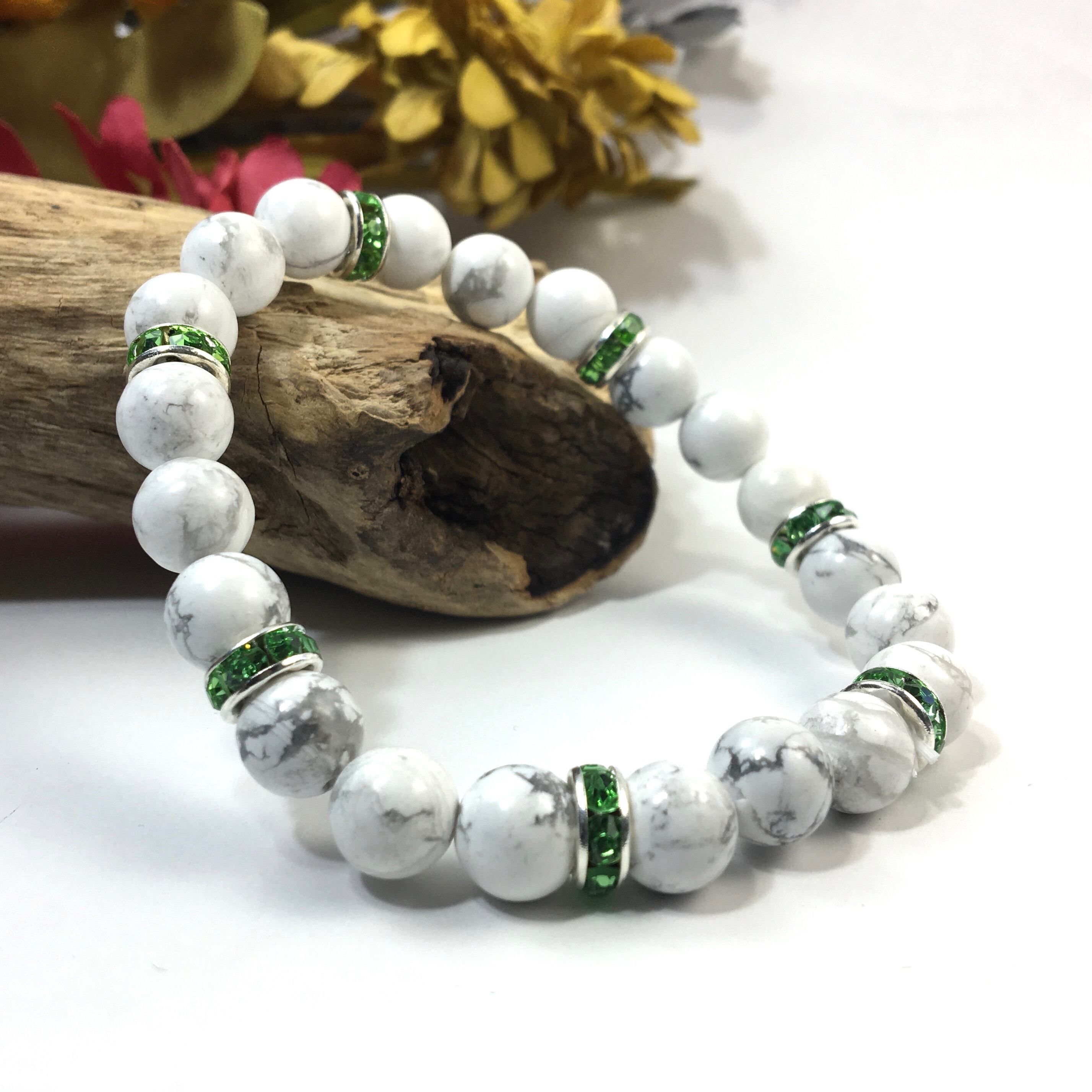 パワーストーン ブレスレット ハウライト 天然石ブレス (グリーン)レディース 女性 数珠ブレス 開運 プレゼント ギフト