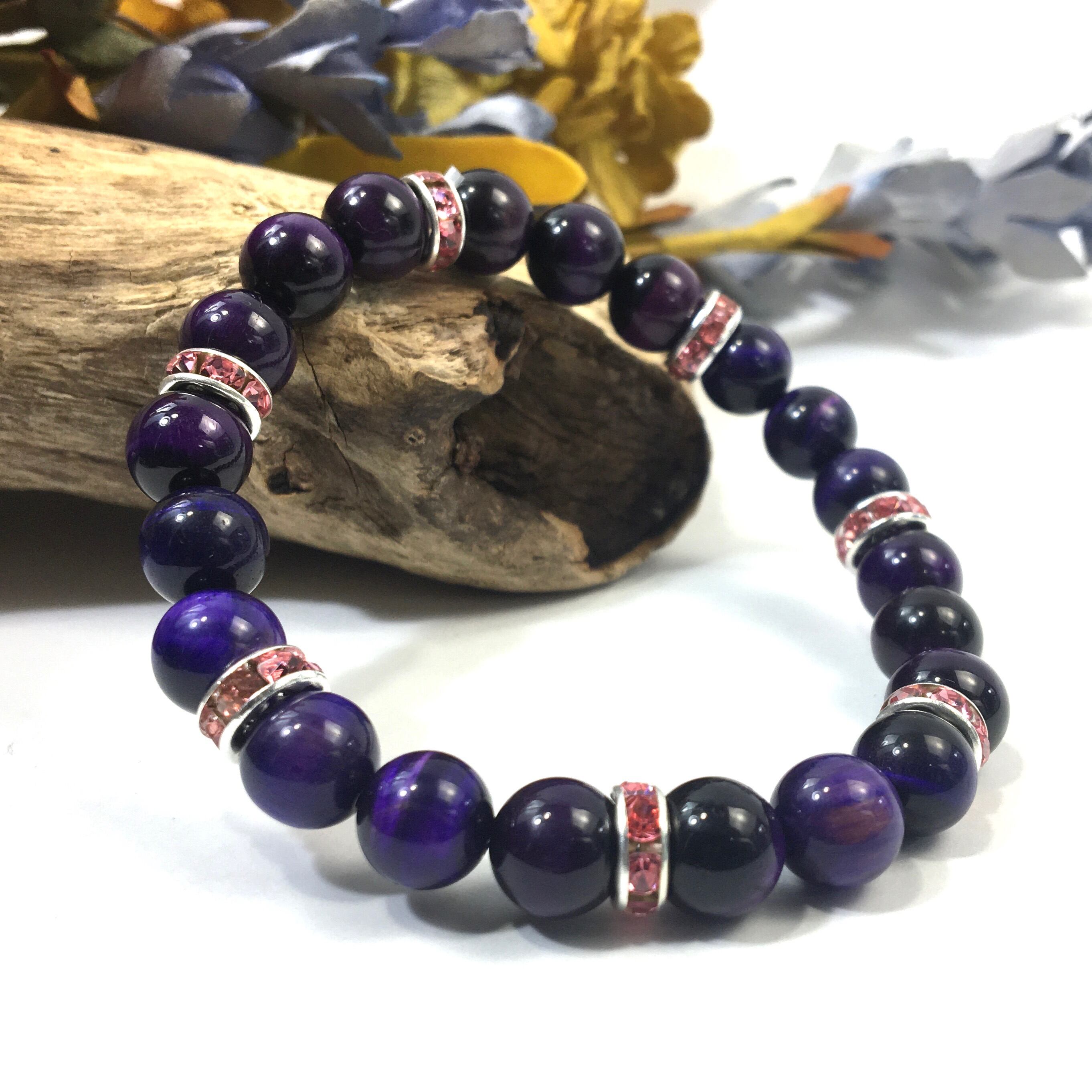 パワーストーン ブレスレット パープルタイガーアイ (ピンク)レディース 女性 数珠ブレス 開運 プレゼント ギフト