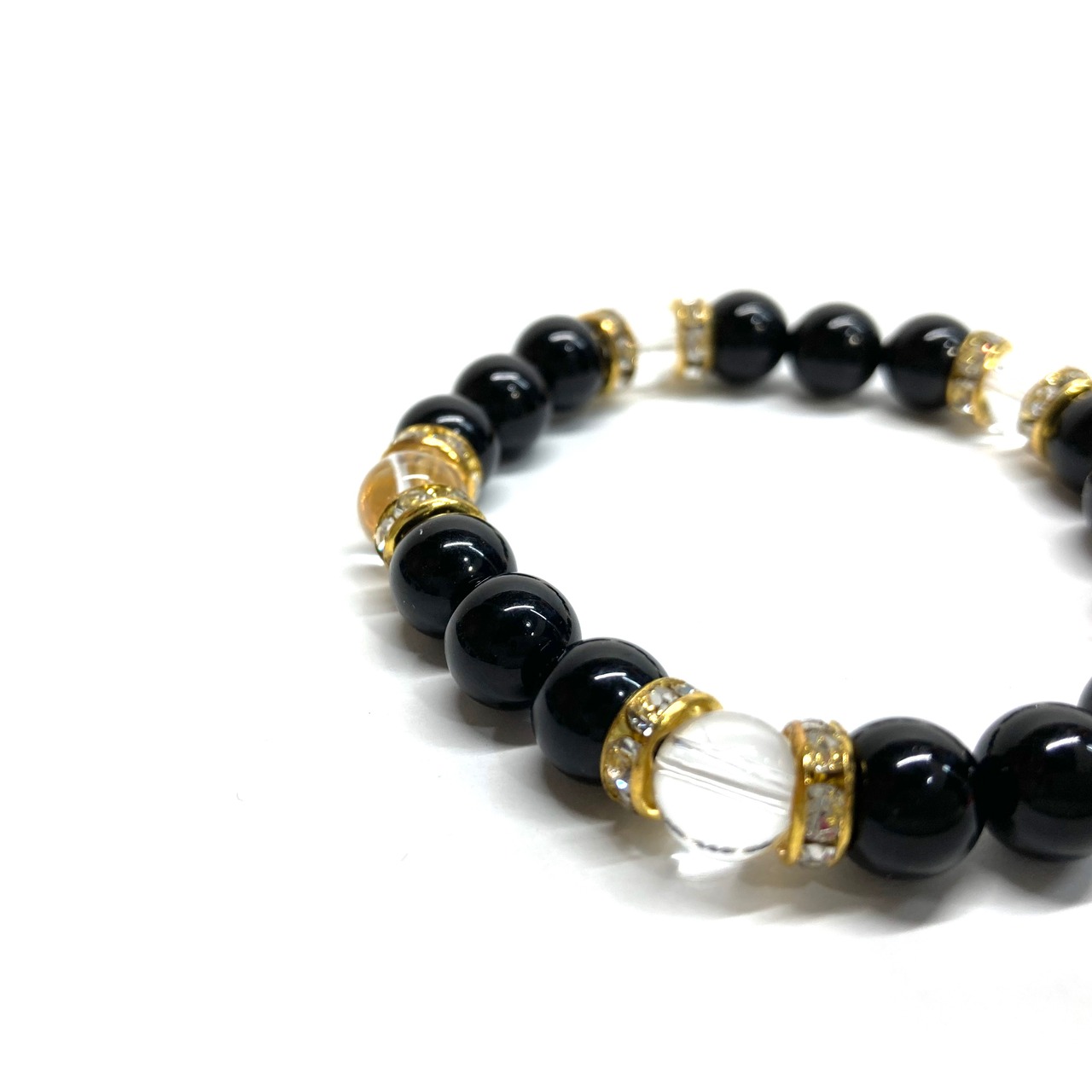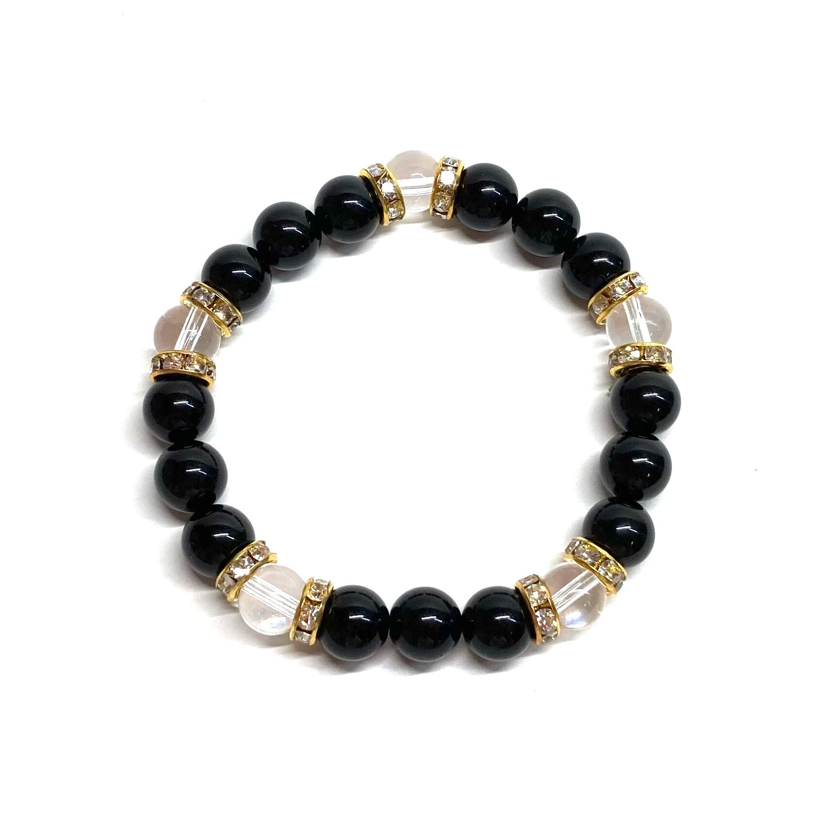 モリオン&水晶 パワーストーン ブレスレット 天然石 (ゴールド)8mm レディース 女性 数珠ブレス 開運 プレゼント ギフト