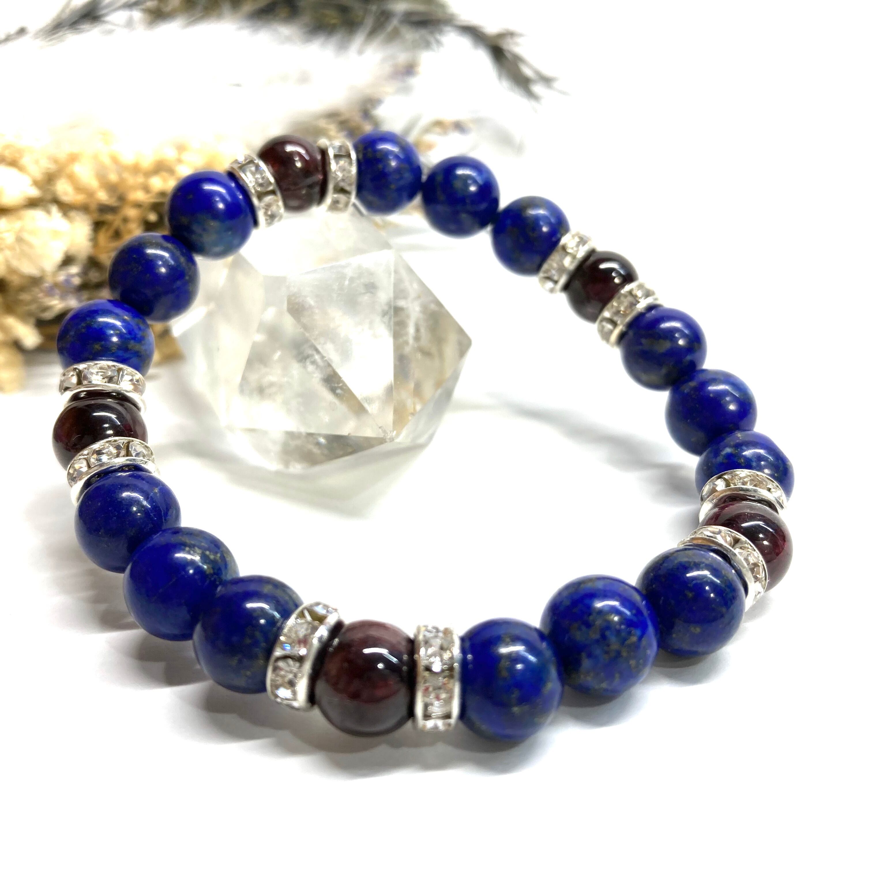 ラピスラズリ&ガーネット パワーストーン ブレスレット 天然石 (シルバー)8mm レディース 女性 数珠ブレス 開運 プレゼント ギフト