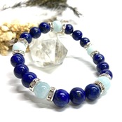 こちらは、8mm玉のラピスラズリとアクアマリン使ったパワーストーンブレスレットです。今回は五芒星デザインで石を配置しております。五芒星は厄除・開運を願うデザインと重宝されているデザインです。サイズは内周 約15cmです。気になる方は是非この機会にどうぞ。