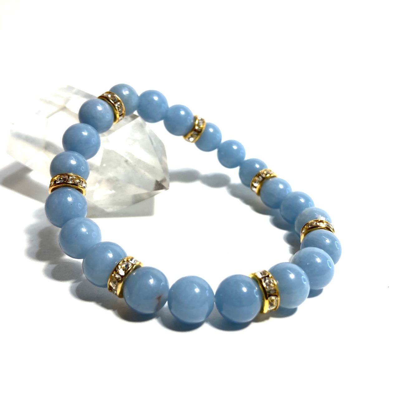 エンジェライト パワーストーン ブレスレット 天然石ブレス (ゴールド)8mm レディース 女性 数珠ブレス 開運 プレゼント ギフト