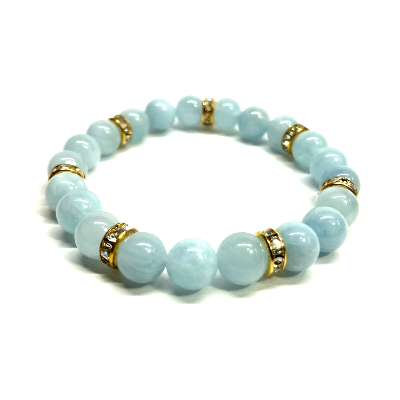 アクアマリン パワーストーン ブレスレット 天然石ブレス (ゴールド)8mm レディース 女性 数珠ブレス 開運 プレゼント ギフト