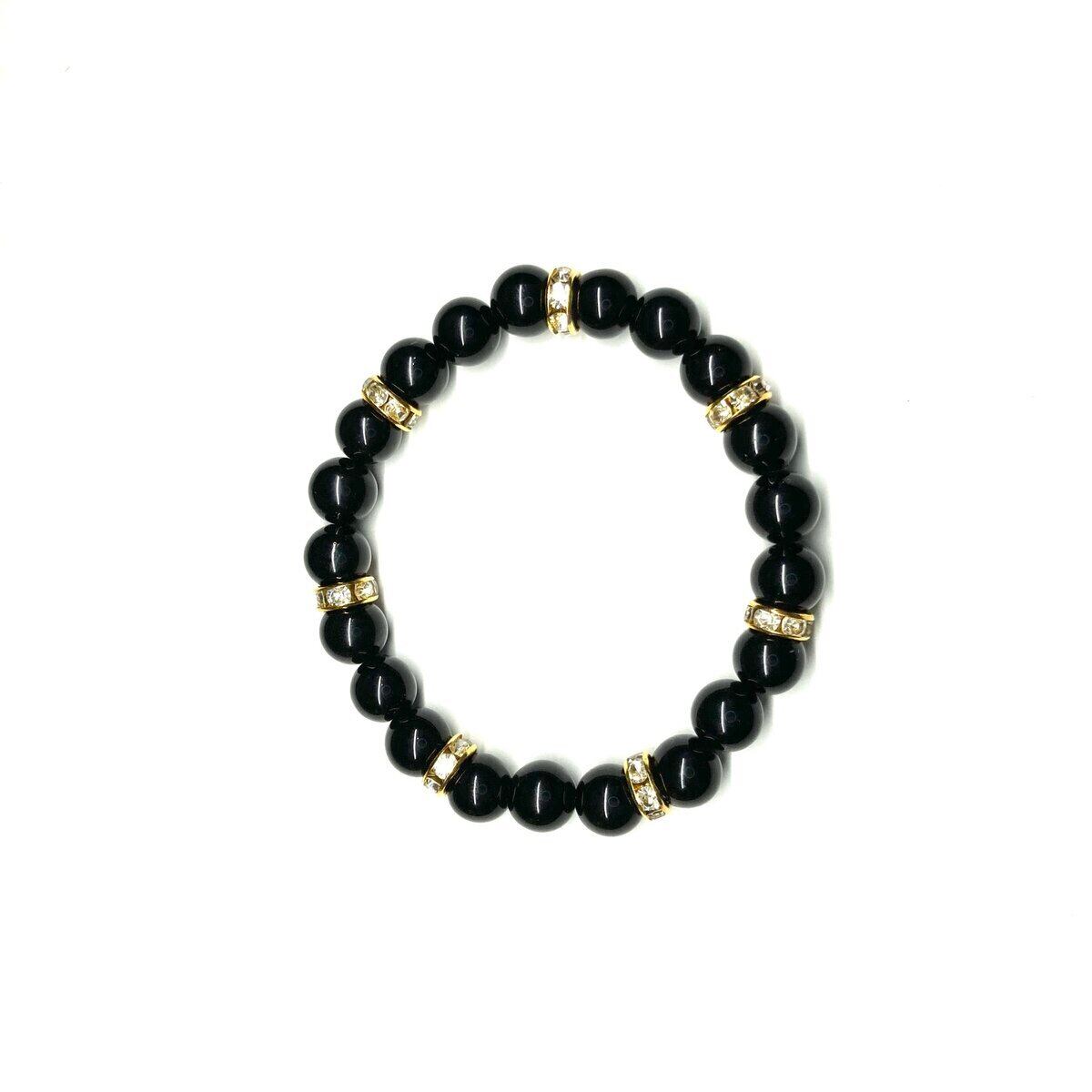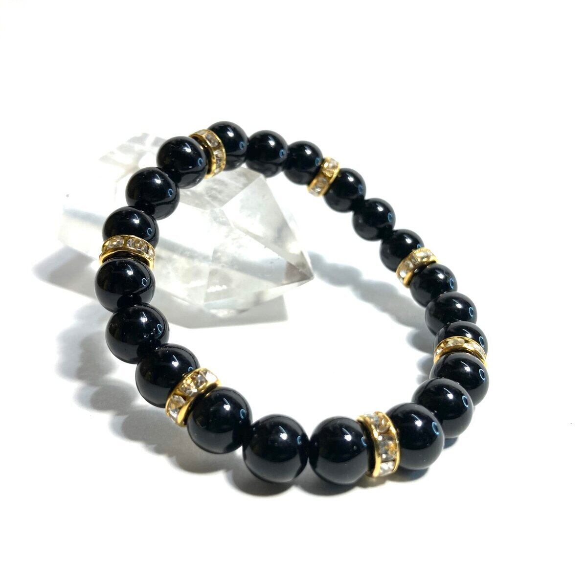 こちらは、8mm玉のモリオンを使ったパワーストーンブレスレットです。シンプルなデザインでどんなコーディネートにも合わせやすいデザインに仕上げています。サイズは内周約15cmです。気になる方は是非この機会にどうぞ。