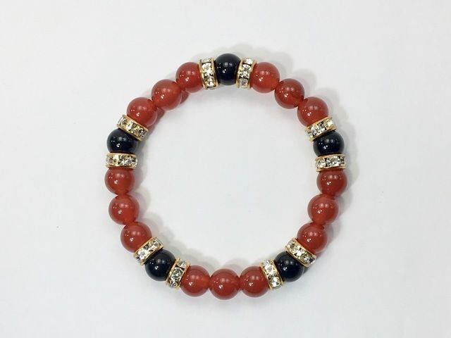 パワーストーン ブレスレット 赤瑪瑙 &オニキス 8mm(ゴールド)レディース 女性 数珠ブレス 開運 プレゼント ギフト
