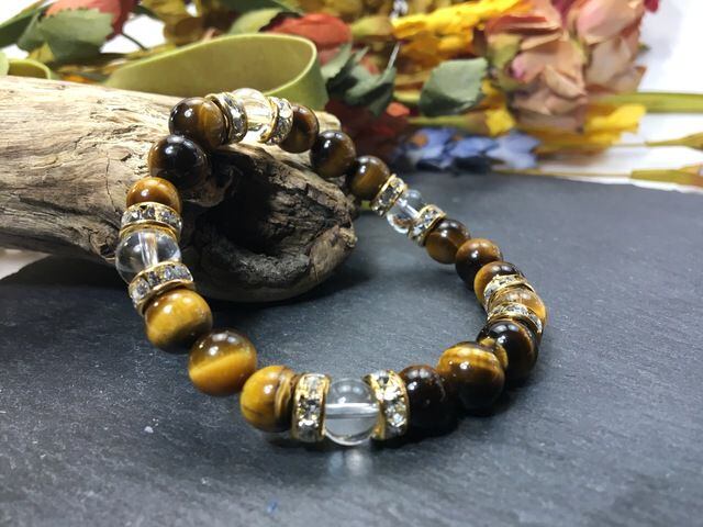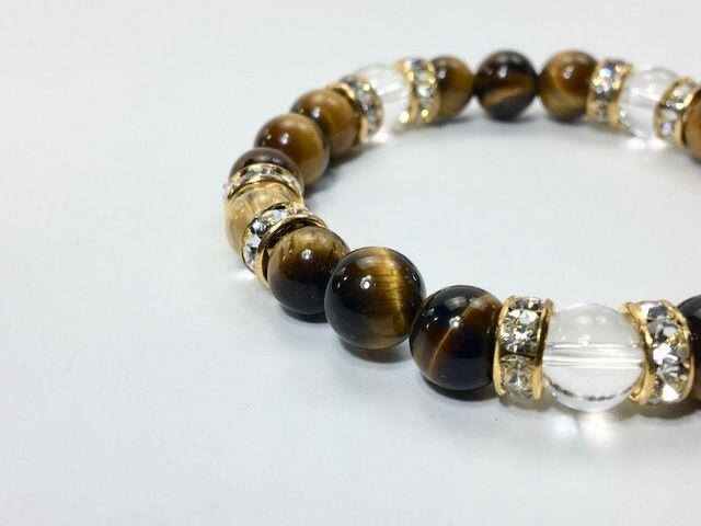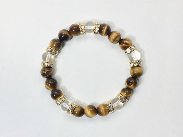 パワーストーン ブレスレット タイガーアイ&水晶 天然石ブレスレット8mm(ゴールド)レディース 女性 数珠ブレス 開運 プレゼント ギフト