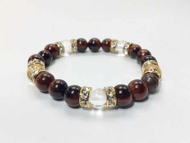 パワーストーン ブレスレット レッドタイガーアイ&水晶 天然石 8mm(ゴールド)レディース 女性 数珠ブレス 開運 プレゼント ギフト