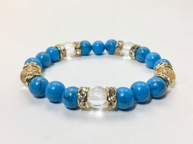 パワーストーン ブレスレット ターコイズ&水晶 8mm(ゴールド)レディース 女性 数珠ブレス 開運 プレゼント ギフト #1