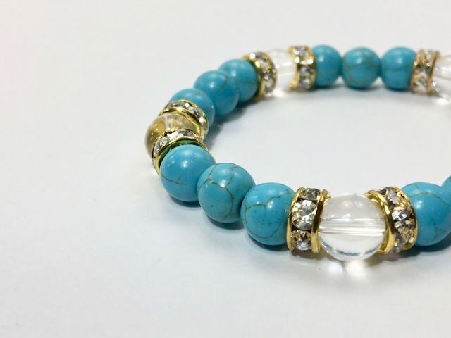 パワーストーン ブレスレット ターコイズ&水晶 8mm(ゴールド)レディース 女性 数珠ブレス 開運 プレゼント ギフト #2