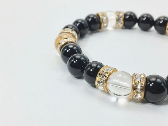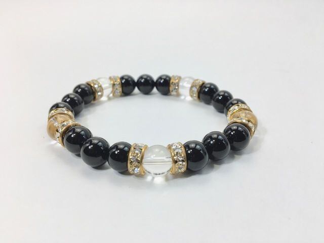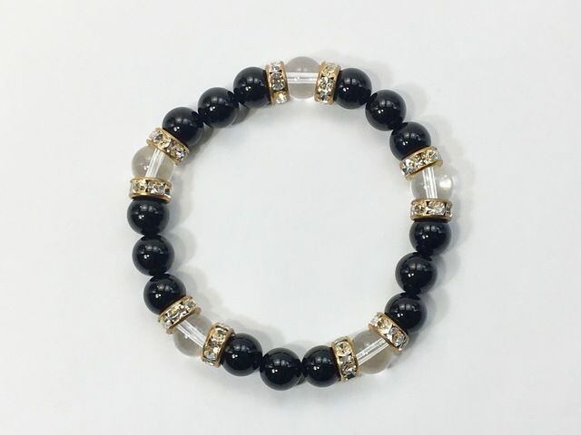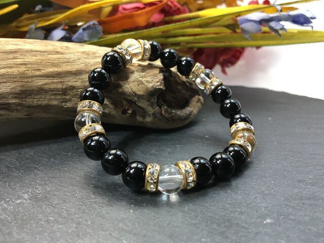 パワーストーン ブレスレット オニキス&水晶 天然石ブレスレット 8mm(ゴールド)レディース 女性 数珠ブレス 開運 プレゼント ギフト