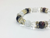 こちらは、8mm玉のレッドタイガーアイと水晶、クラック水晶を組み合わせたパワーストーンブレスレットです。今回は五芒星デザインで石を配置しております。五芒星とは、陰陽道の基本概念となった陰陽五行説、木・火・土・金・水の5つの元素の働きの相克を表したものであり、五芒星は厄除・開運を願うデザインと重宝されているデザインです。サイズは内周約15cmです。気になる方は是非この機会にどうぞ。