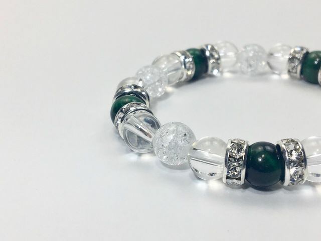 パワーストーン ブレスレット グリーンタイガーアイ&水晶&クラック水晶 (シルバー)レディース 女性 数珠ブレス 開運 プレゼント ギフト