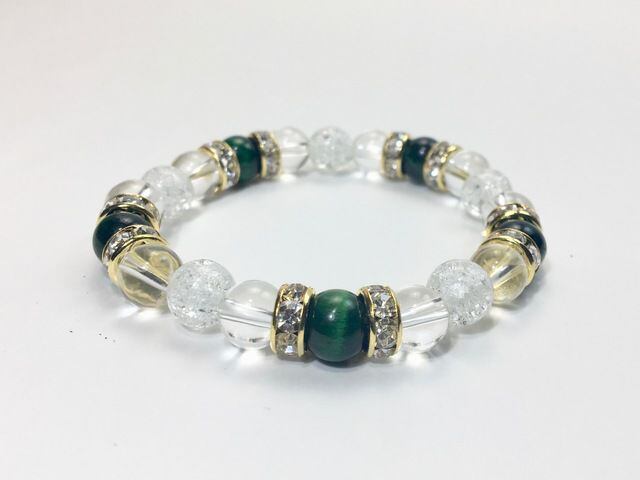 パワーストーン ブレスレット グリーンタイガーアイ&水晶&クラック水晶 (ゴールド)レディース 女性 数珠ブレス 開運 プレゼント ギフト