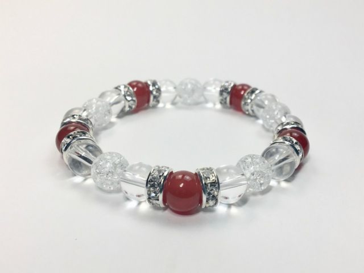 パワーストーン ブレスレット 赤瑪瑙&水晶&クラック水晶 天然石 (シルバー)レディース 女性 数珠ブレス 開運 プレゼント ギフト
