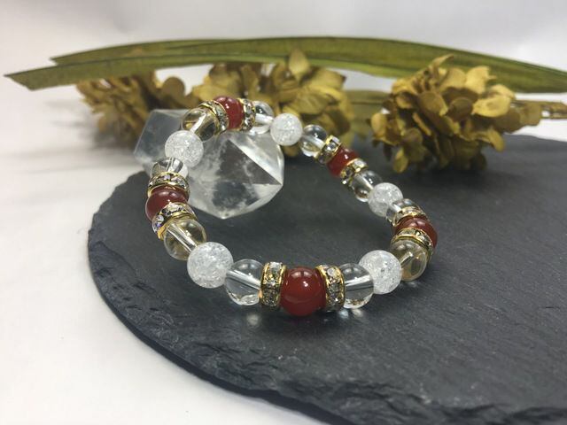 パワーストーン ブレスレット 赤瑪瑙&水晶&クラック水晶 (ゴールド)レディース 女性 数珠ブレス 開運 プレゼント ギフト