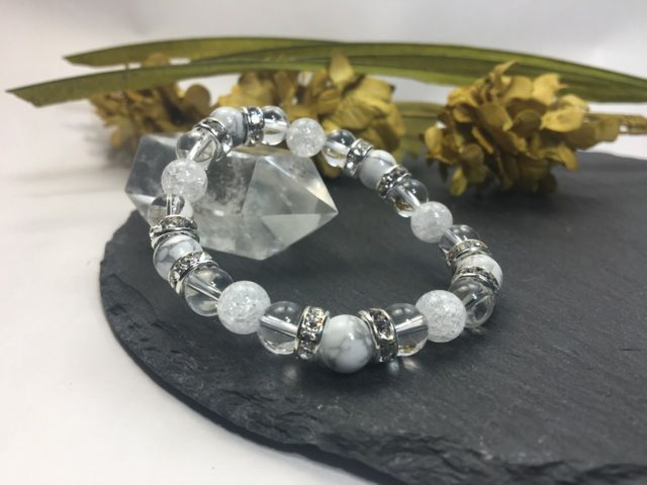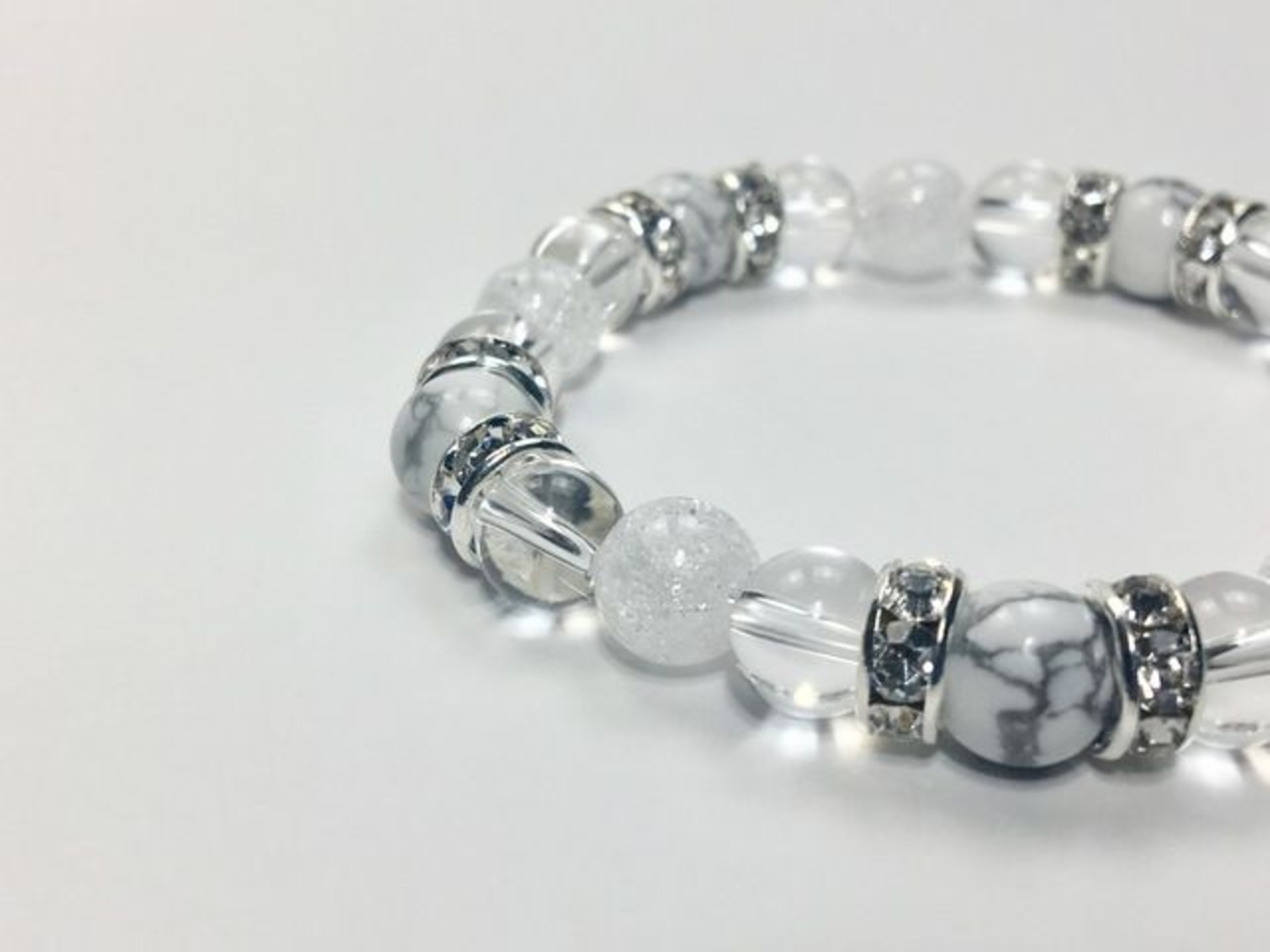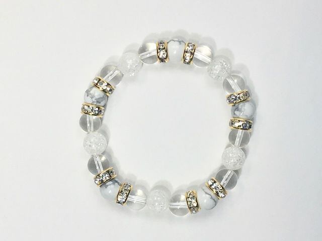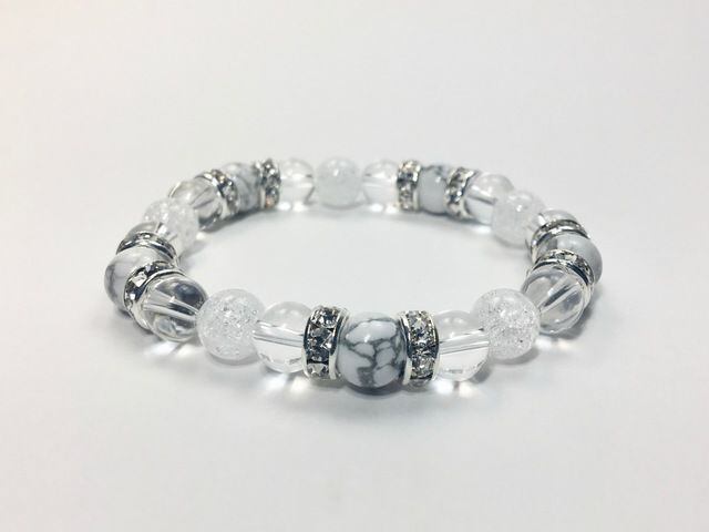 パワーストーン ブレスレット ハウライト&水晶&クラック水晶 (シルバー)レディース 女性 数珠ブレス 開運 プレゼント ギフト