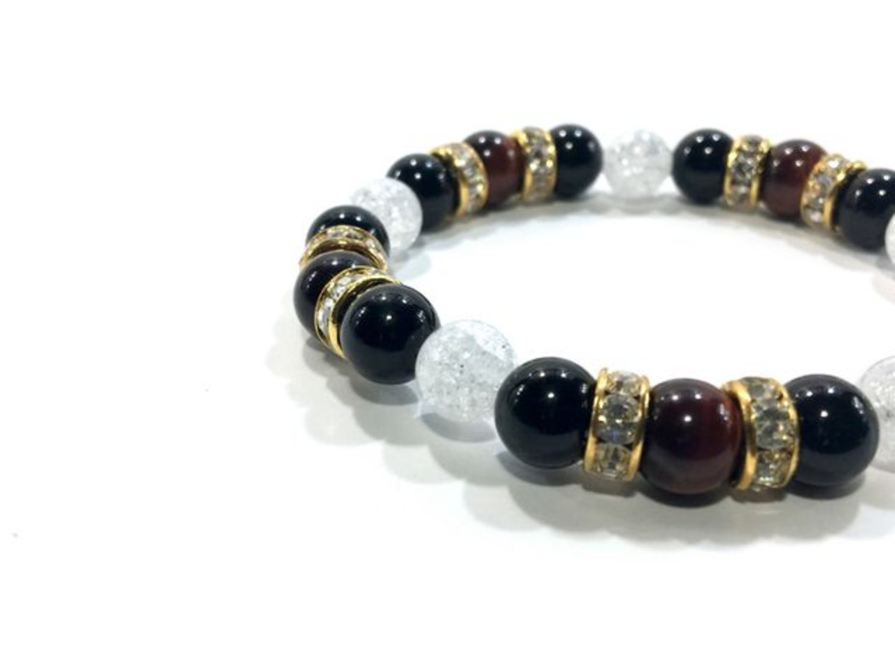 パワーストーン ブレスレット レッドタイガーアイ&オニキス&クラック水晶 (ゴールド)レディース 女性 数珠ブレス 開運 プレゼント ギフト