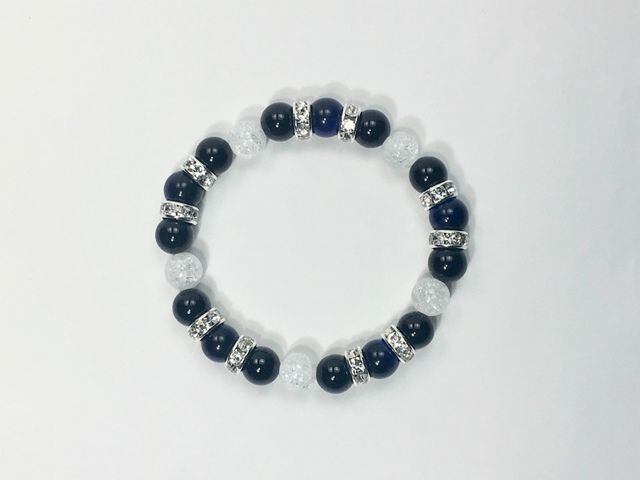 こちらは、8mm玉のブルータイガーアイとオニキス、クラック水晶を組み合わせたパワーストーンブレスレットです。今回は五芒星デザインで石を配置しております。五芒星とは、陰陽道の基本概念となった陰陽五行説、木・火・土・金・水の5つの元素の働きの相克を表したものであり、五芒星は厄除・開運を願うデザインと重宝されているデザインです。サイズは内周約15cmです。気になる方は是非この機会にどうぞ。