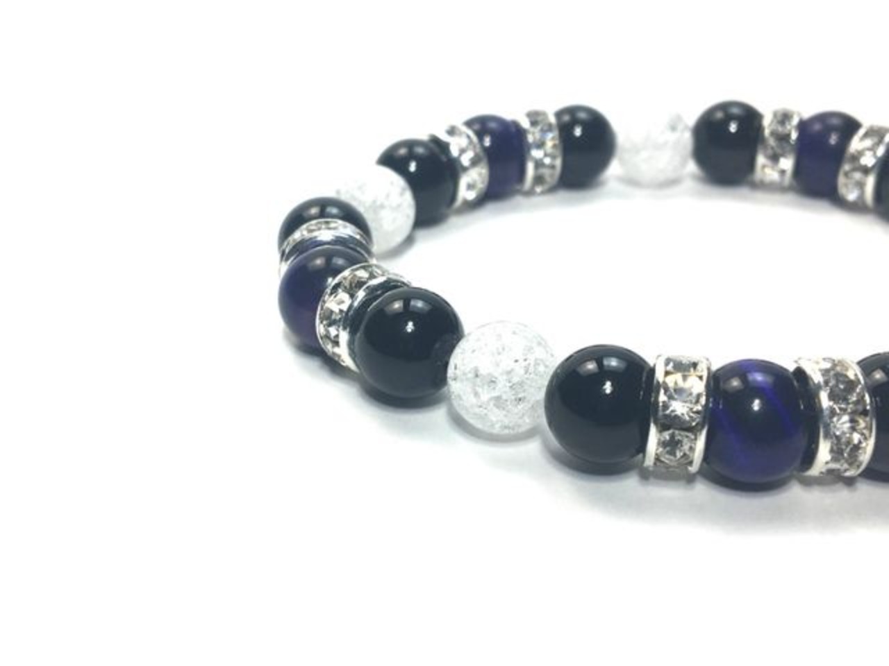 パワーストーン ブレスレット パープルタイガーアイ&オニキス&クラック水晶 (シルバー)レディース 女性 数珠ブレス 開運 プレゼント ギフト