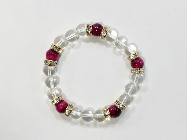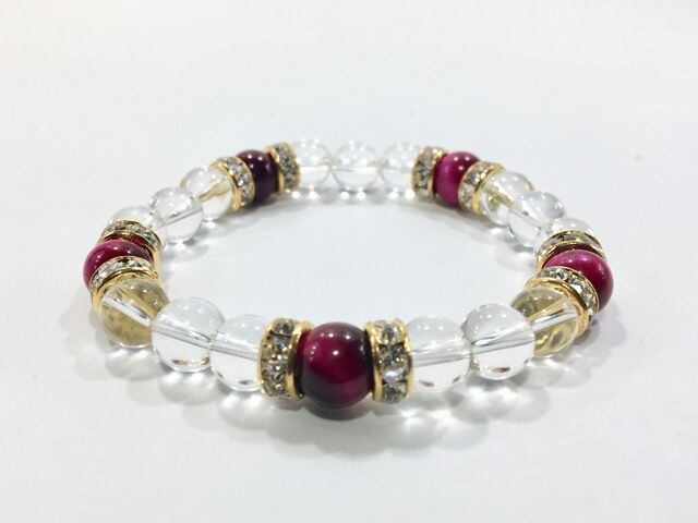 パワーストーン ブレスレット ピンクタイガーアイ&水晶 (ゴールド)レディース 女性 数珠ブレス 開運 プレゼント ギフト