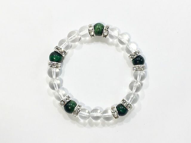 パワーストーン ブレスレット グリーンタイガーアイ&水晶 (シルバー)レディース 女性 数珠ブレス 開運 プレゼント ギフト
