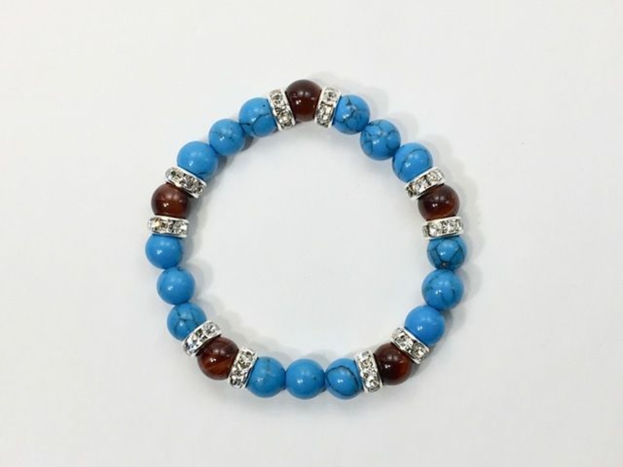 こちらは、8mm玉のターコイズとレッドタイガーアイを使ったパワーストーンブレスレットです。シンプルなデザインでどんなコーディネートにも合わせやすいデザインに仕上げています。サイズは内径約15cmです。気になる方は是非この機会にどうぞ。