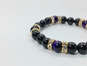 こちらは、8mm玉のオニキスとパープルタイガーアイを使ったパワーストーンブレスレットです。シンプルなデザインでどんなコーディネートにも合わせやすいデザインに仕上げています。サイズは内周約15cmです。気になる方は是非この機会にどうぞ。