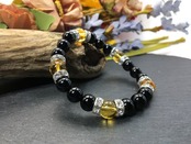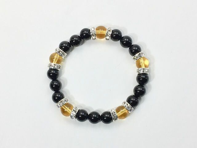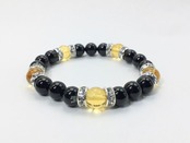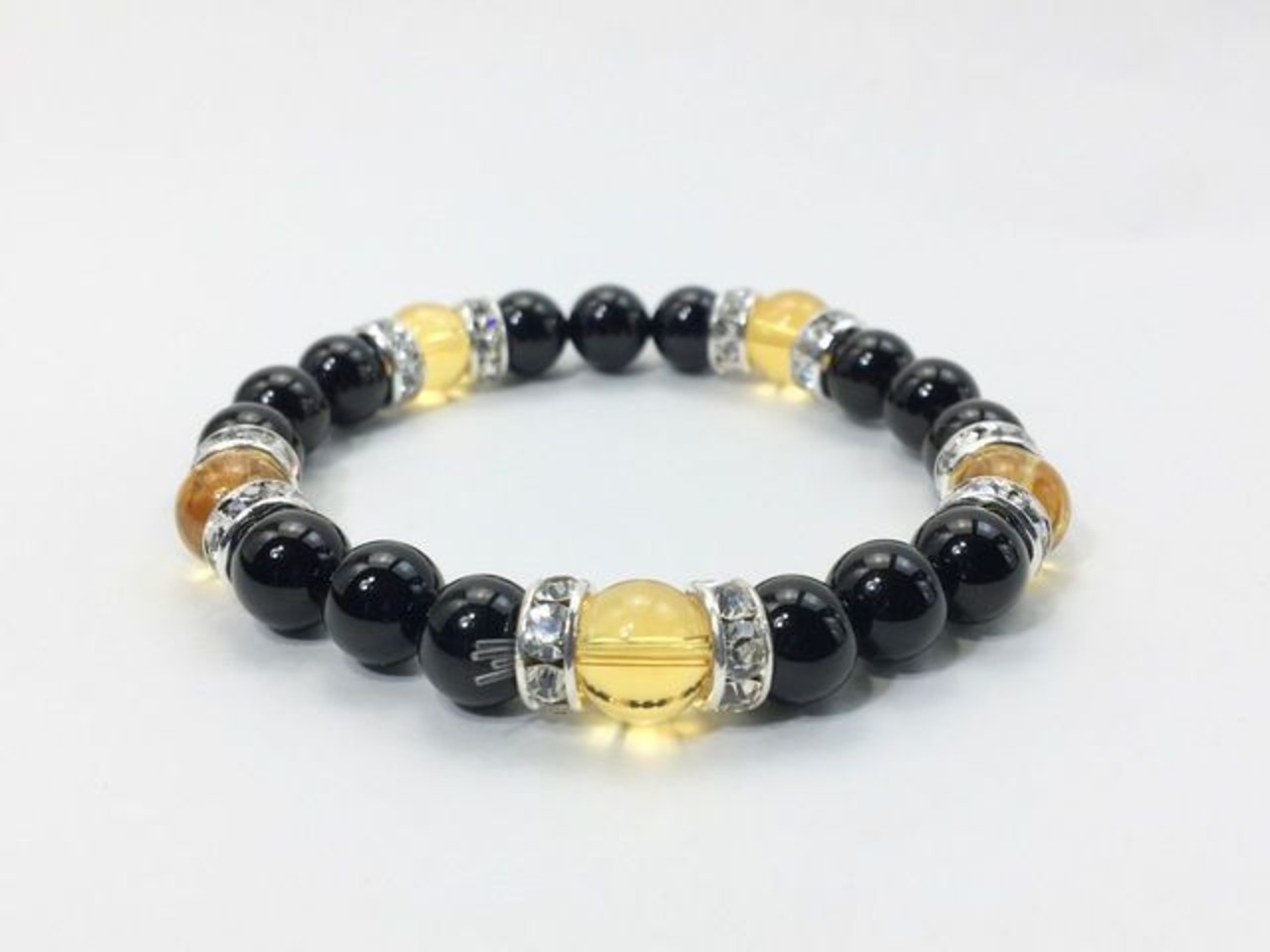 こちらは、8mm玉のオニキスとシトリンを使ったパワーストーンブレスレットです。シンプルなデザインでどんなコーディネートにも合わせやすいデザインに仕上げています。サイズは内周約15cmです。気になる方は是非この機会にどうぞ。