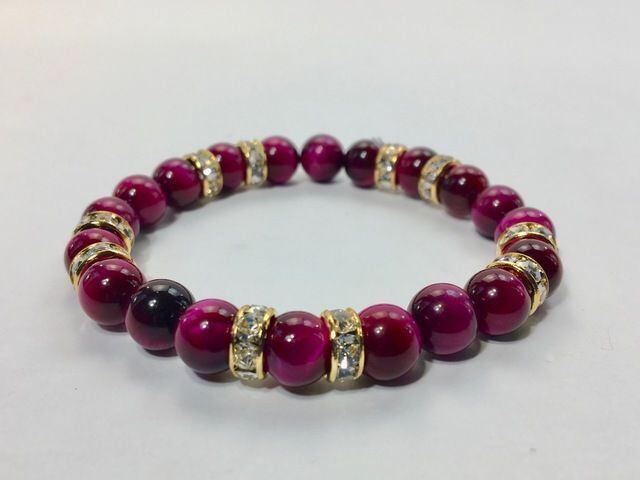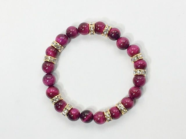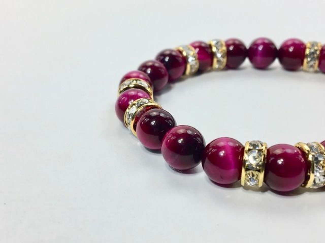 こちらは、8mm玉のピンクタイガーアイを使ったパワーストーンブレスレットです。シンプルなデザインでどんなコーディネートにも合わせやすいデザインに仕上げています。サイズは内周約15cmです。気になる方は是非この機会にどうぞ。