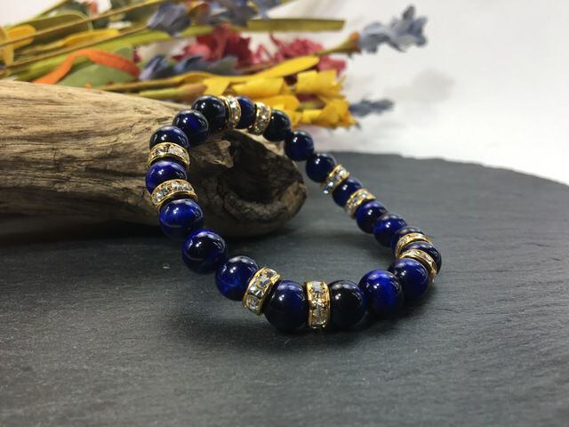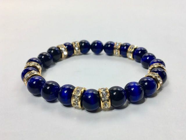 こちらは、8mm玉のブルータイガーアイを使ったパワーストーンブレスレットです。シンプルなデザインでどんなコーディネートにも合わせやすいデザインに仕上げています。サイズは内周約15cmです。気になる方は是非この機会にどうぞ。