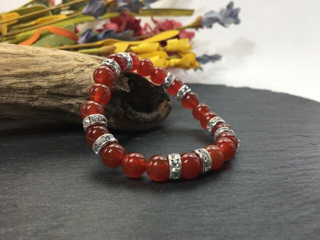 こちらは、8mm玉の赤瑪瑙を使ったパワーストーンブレスレットです。シンプルなデザインでどんなコーディネートにも合わせやすいデザインに仕上げています。サイズは内周約15cmです。気になる方は是非この機会にどうぞ。