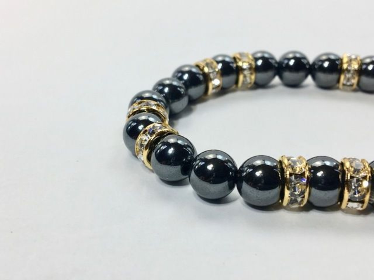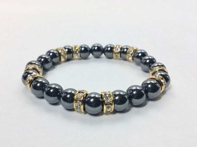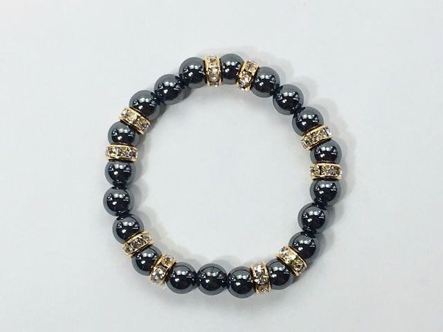こちらは、8mm玉のヘマタイトを使ったパワーストーンブレスレットです。シンプルなデザインでどんなコーディネートにも合わせやすいデザインに仕上げています。サイズは内周約15cmです。気になる方は是非この機会にどうぞ。