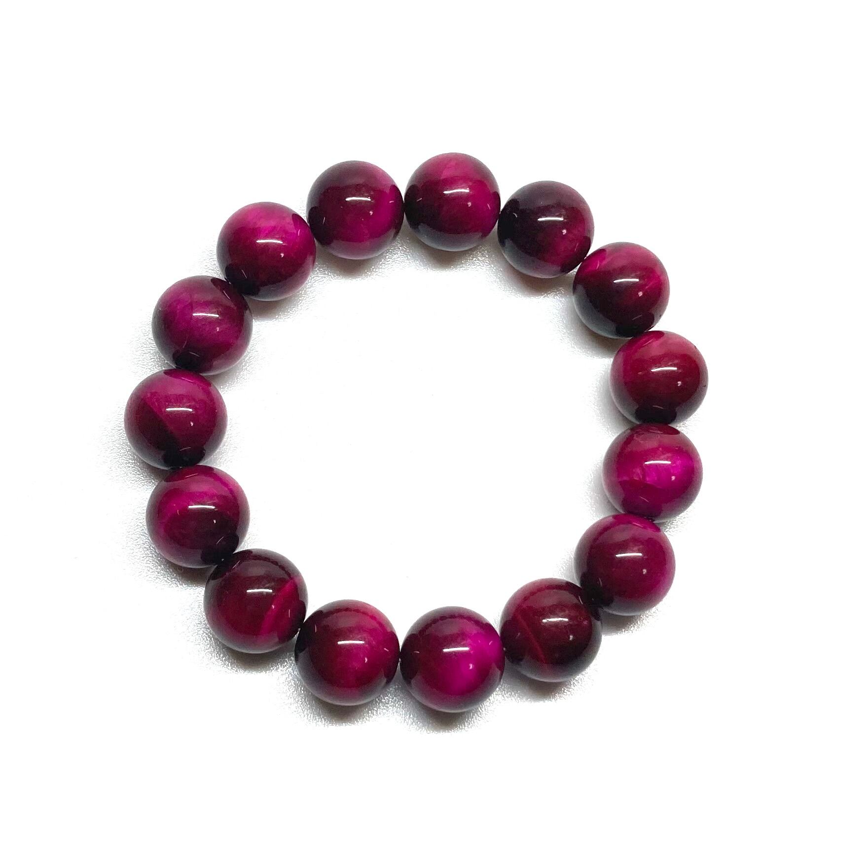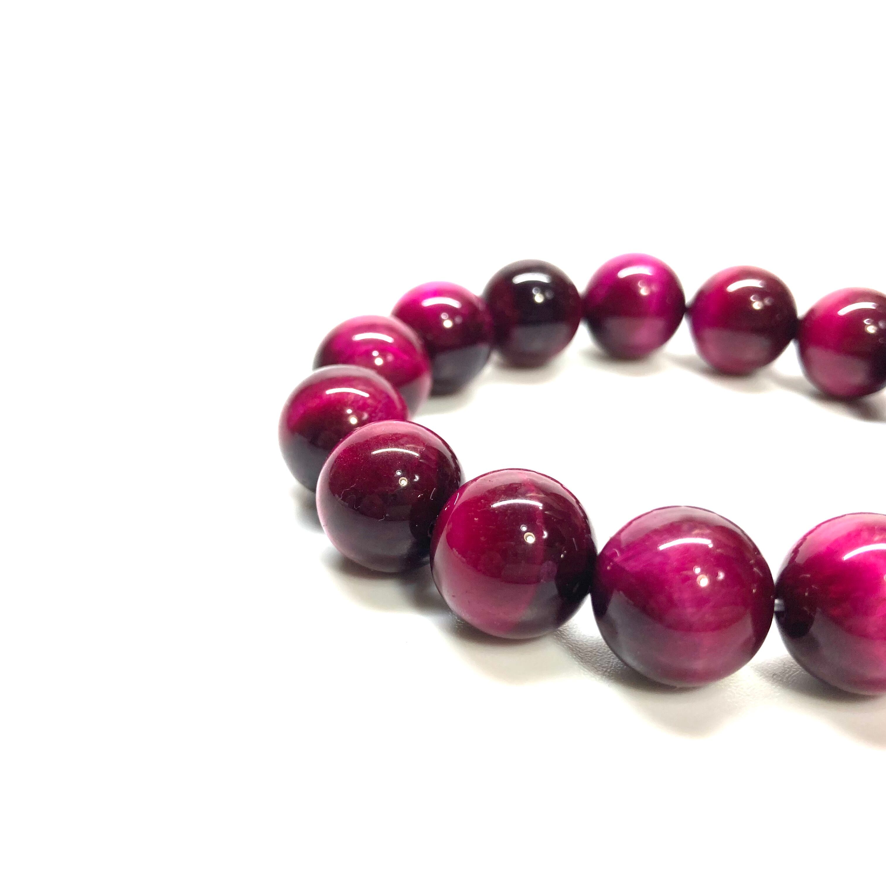 こちらは、14mm玉のピンクタイガーアイを使用したブレスレットです。シンプルなデザインですのでどんなコーディネートとも合わせ易いブレスレットです。石大きさはインパクトを与えてくれる大きさの14mm玉を使用しています。内周約17cmです。数に限りがございますので気になる方はお早めにどうぞ。