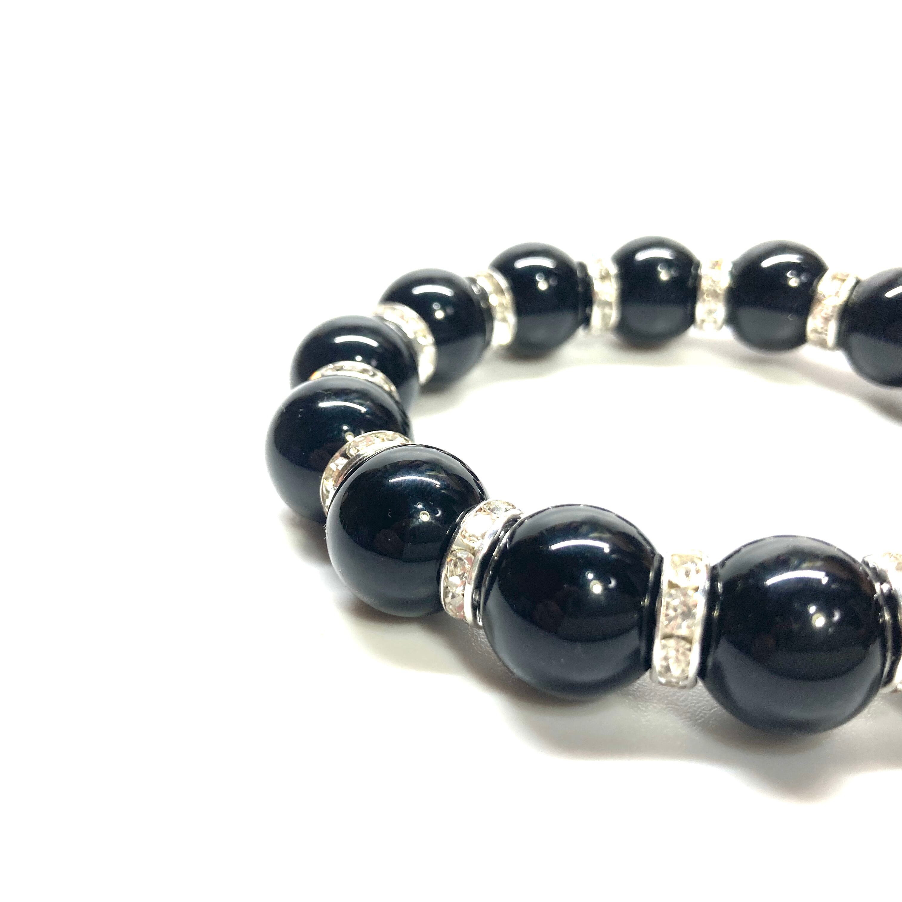オニキス パワーストーン ブレスレット 天然石ブレス (シルバー) 14mm メンズ・レディース 男性・女性 数珠ブレス 開運 ☆