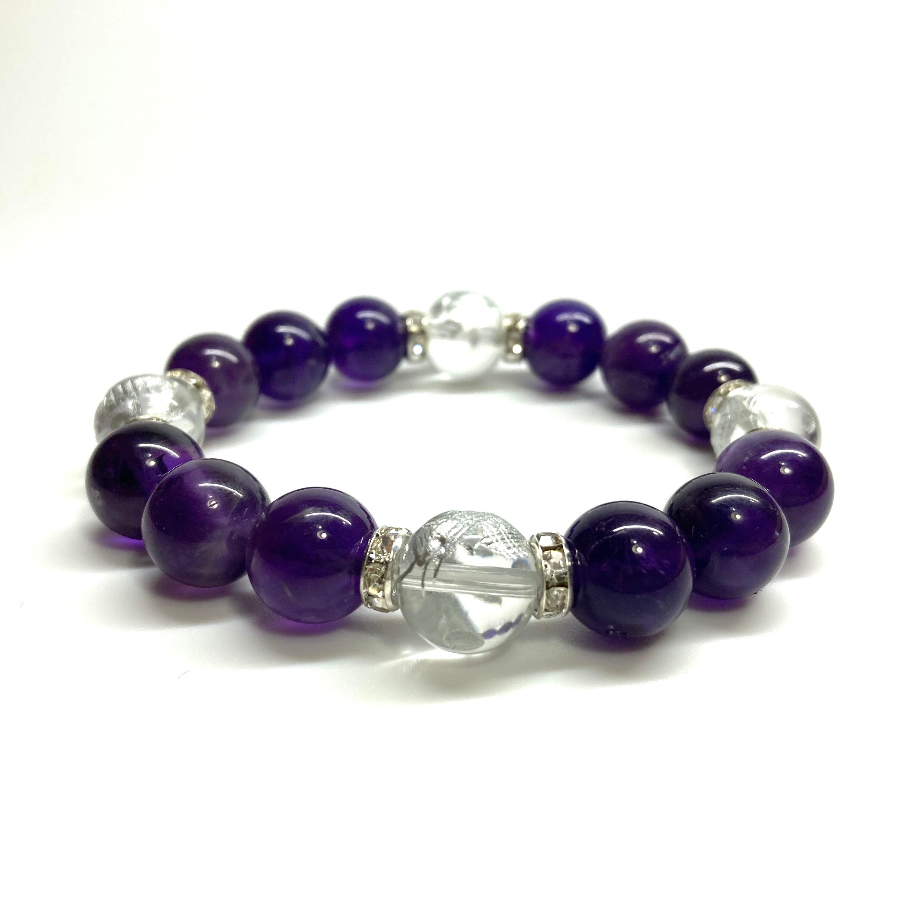 12mm 四神獣銀彫水晶×アメジスト パワーストーン ブレスレット天然石 運気上昇 開運 ☆ 恋愛運 お守り 青龍 白虎 玄武 朱雀 2月誕生石 (シルバー)メンズ・レディース 男性・女性 数珠ブレス 開運 ☆