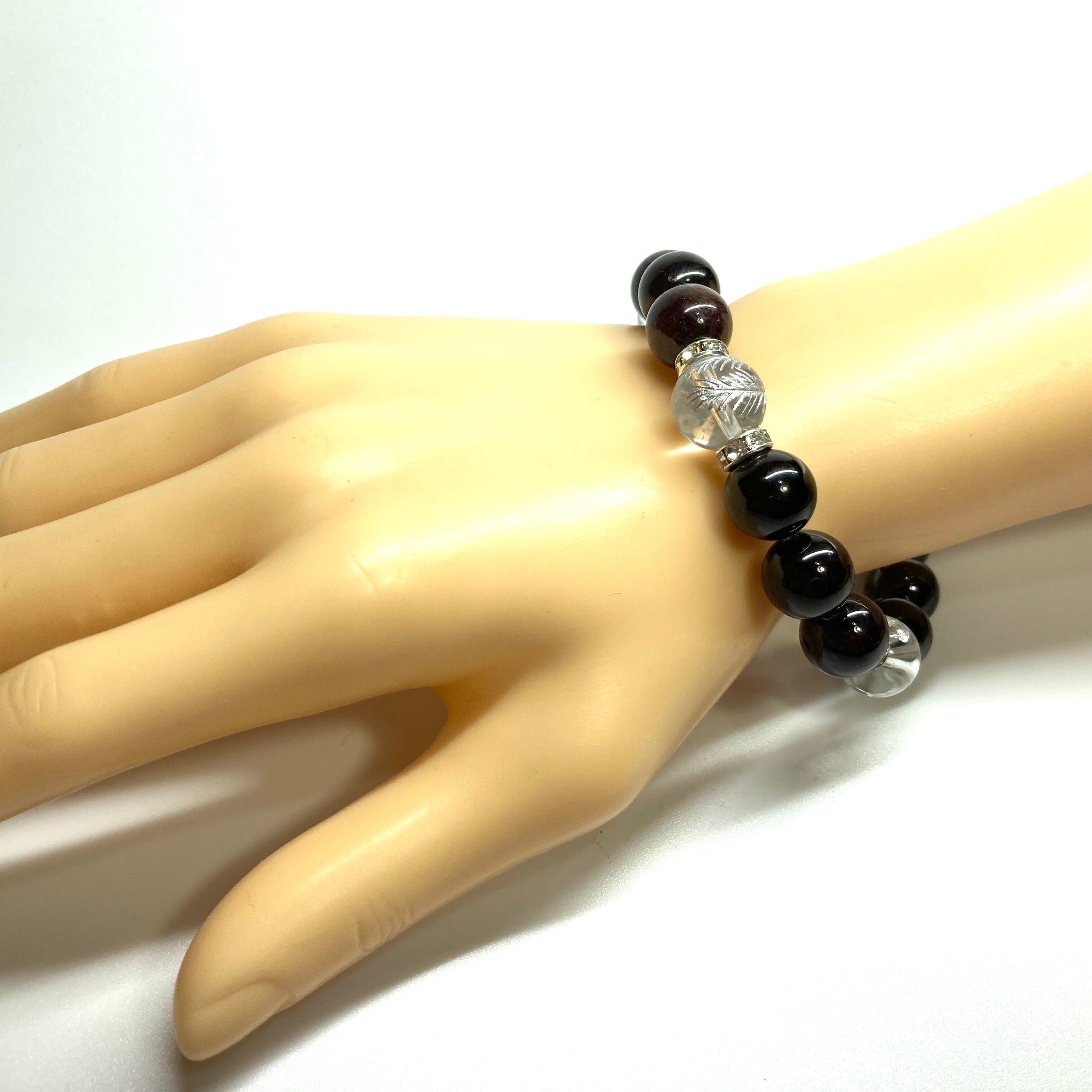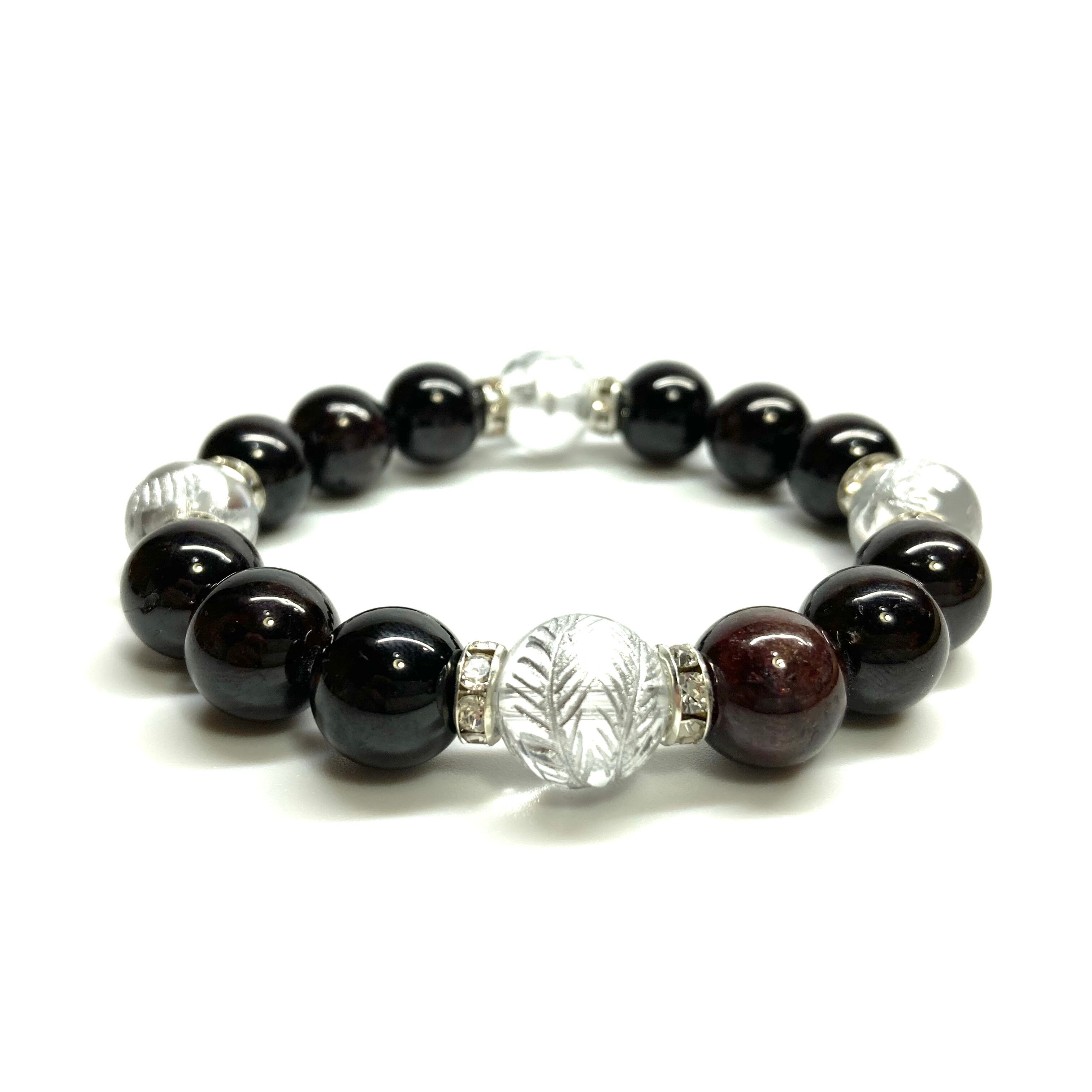 12mm 四神獣銀彫水晶×ガーネット パワーストーン ブレスレット天然石 運気上昇 開運 ☆ 恋愛運 お守り 青龍 白虎 玄武 朱雀 1月誕生石 (シルバー)メンズ・レディース 男性・女性 数珠ブレス 開運 ☆